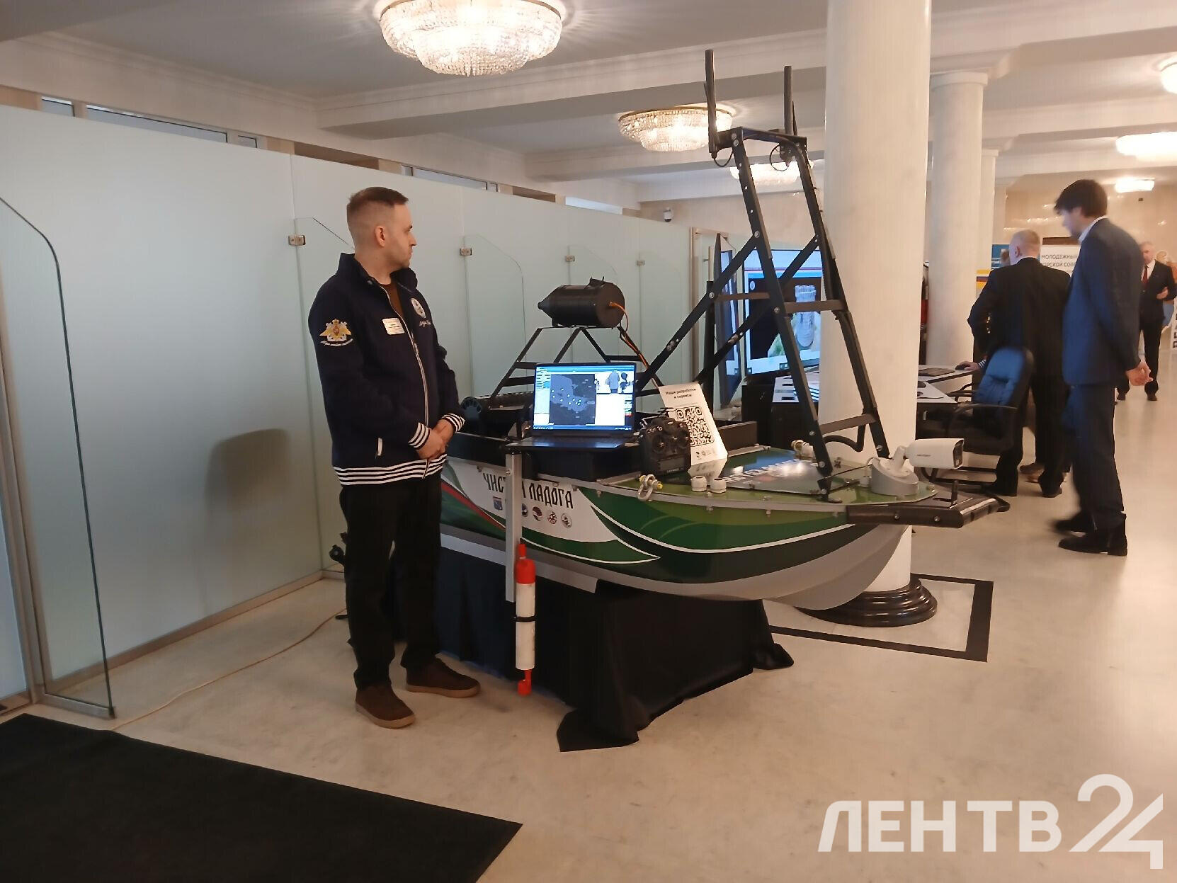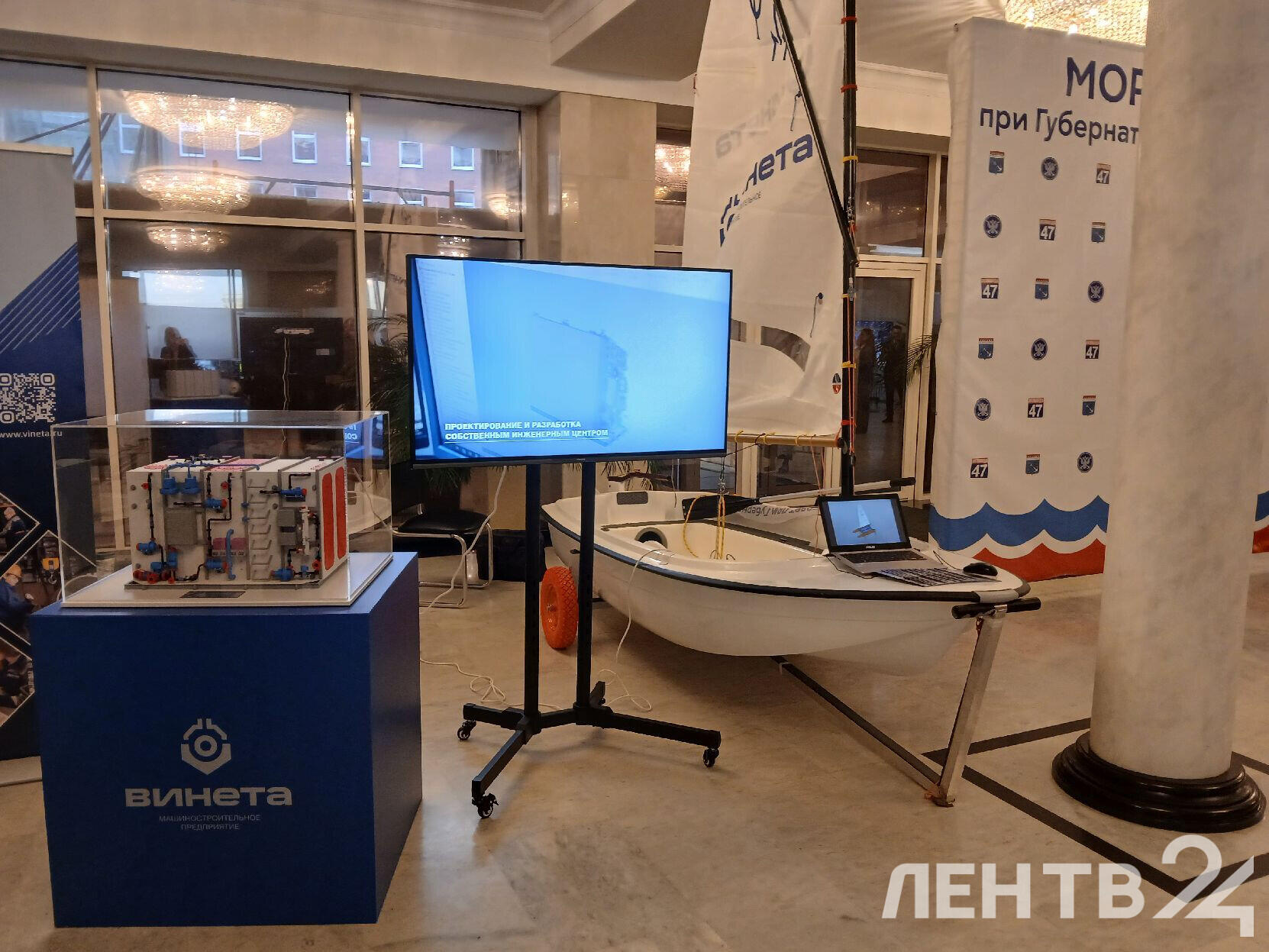 На первом этаже Дома Правительства открылась выставка главных производителей региона в судостроительной и морской научно-исследовательской деятельности. Здесь представлены лучшие образцы российского кораблестроения: от морских беспилотников и мини-ледоколов до безэкипажных катеров. Ее также осмотрел губернатор Александр Дрозденко.