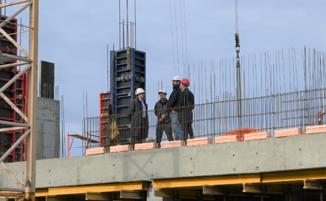 В южном жилом районе Выборга активно продолжается строительство долгожданной поликлиники. Это один из самых значимых социальных объектов для всего города. Ход работ и текущую готовность здания лично проверил председатель комитета по строительству Ленинградской области Егор Никитенко.