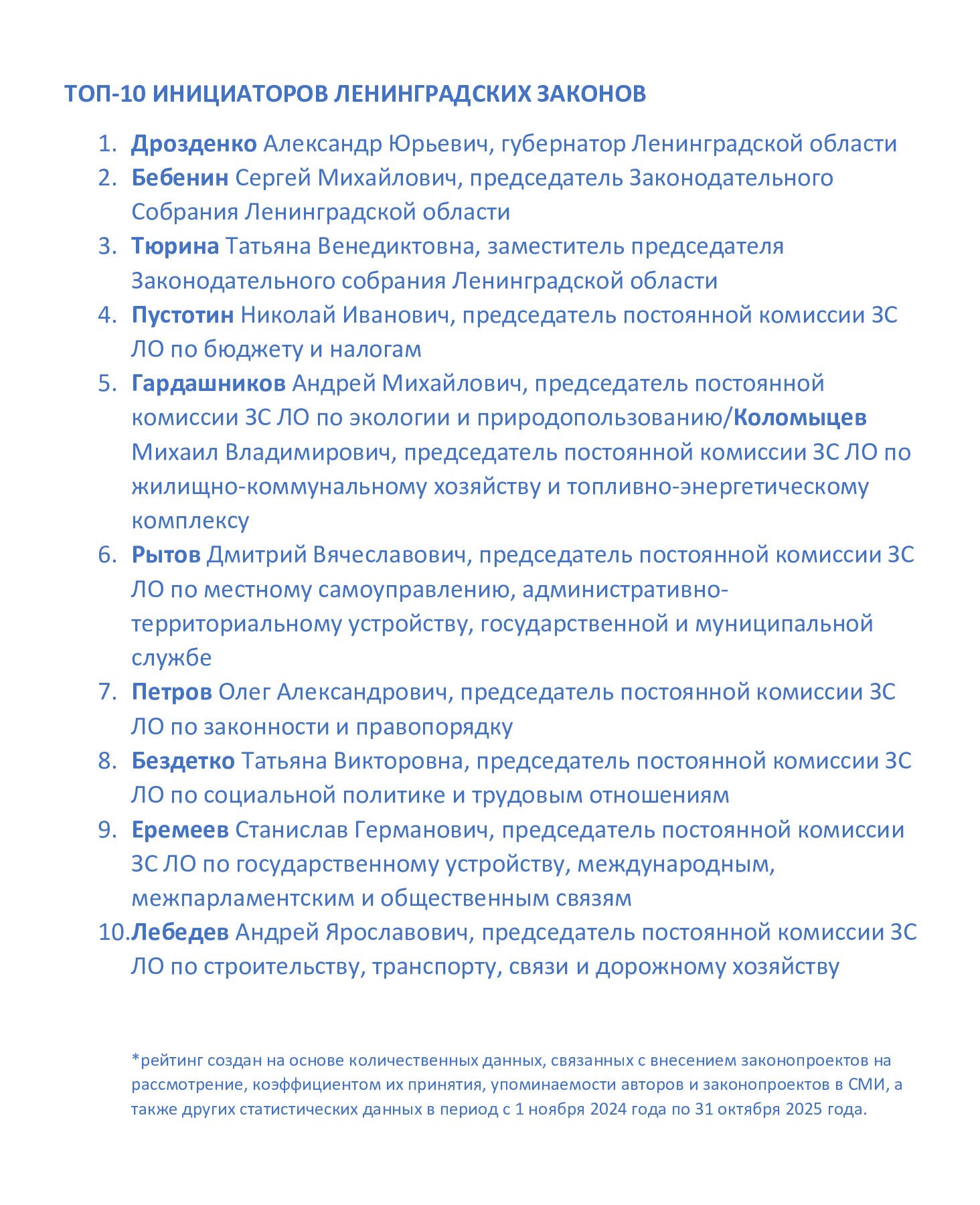 ТОП - 10 ЛЕНИНГРАДСКИХ ЗАКОНОВ «2025»: В приоритете интересы жителей