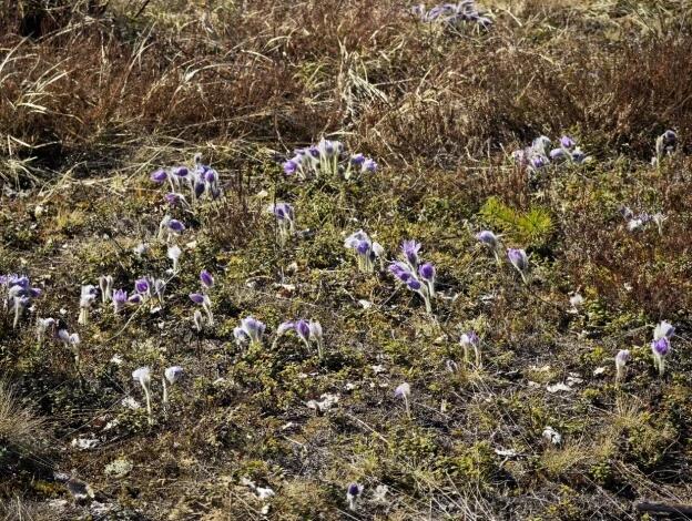Ранняя весна сдвинула сроки цветения прострелов (сон‑травы, Pulsatilla) в Ленинградской области почти на три недели. Крупные синие, фиолетовые или белые цветки этих растений — настоящее украшение апрельского леса, где в тенистых местах еще лежит снег.