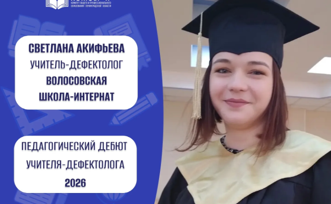 Педагог Волосовской школы‑интерната с трехлетним стажем Светлана Акифьева представит свой регион в финале VI Всероссийского конкурса «Педагогический дебют учителя‑дефектолога 2026».