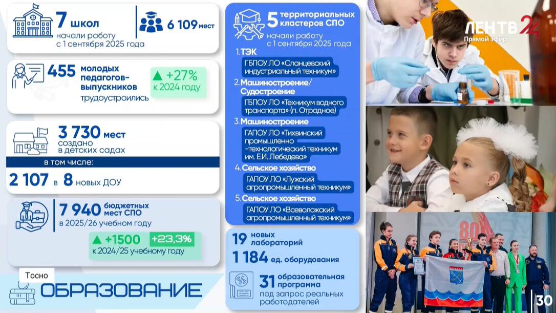 В 2025 году в Ленобласти открыли семь новых школ и создали более 3700 мест в детсадах