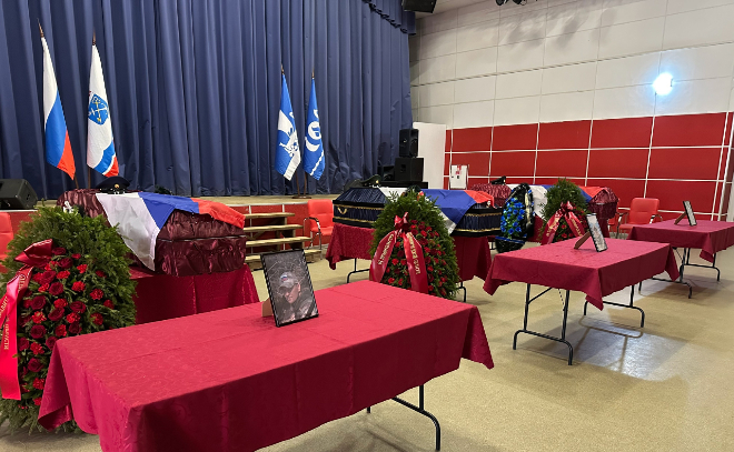 Проститься с бойцами пришли десятки людей: их родные и близкие, друзья и коллеги, а также обычные земляки. Гражданская панихида прошла в МДЦ «Восход».