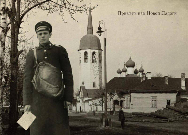 скульптура, чей прообраз — почтальон Новоладожской конторы начала ХХ века Павел