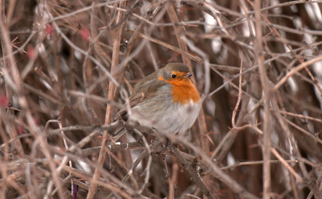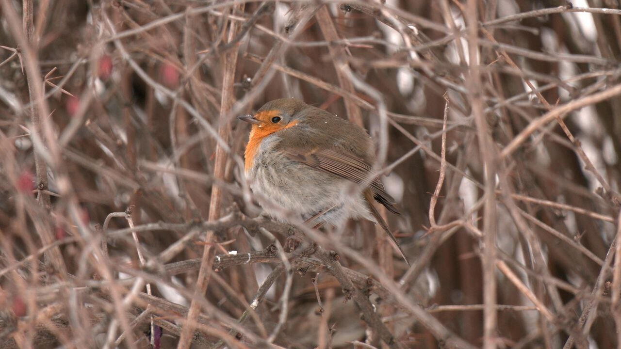 В петербургской усадьбе Сосновка осталась зимовать малиновка