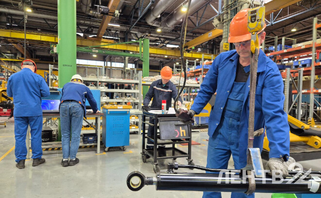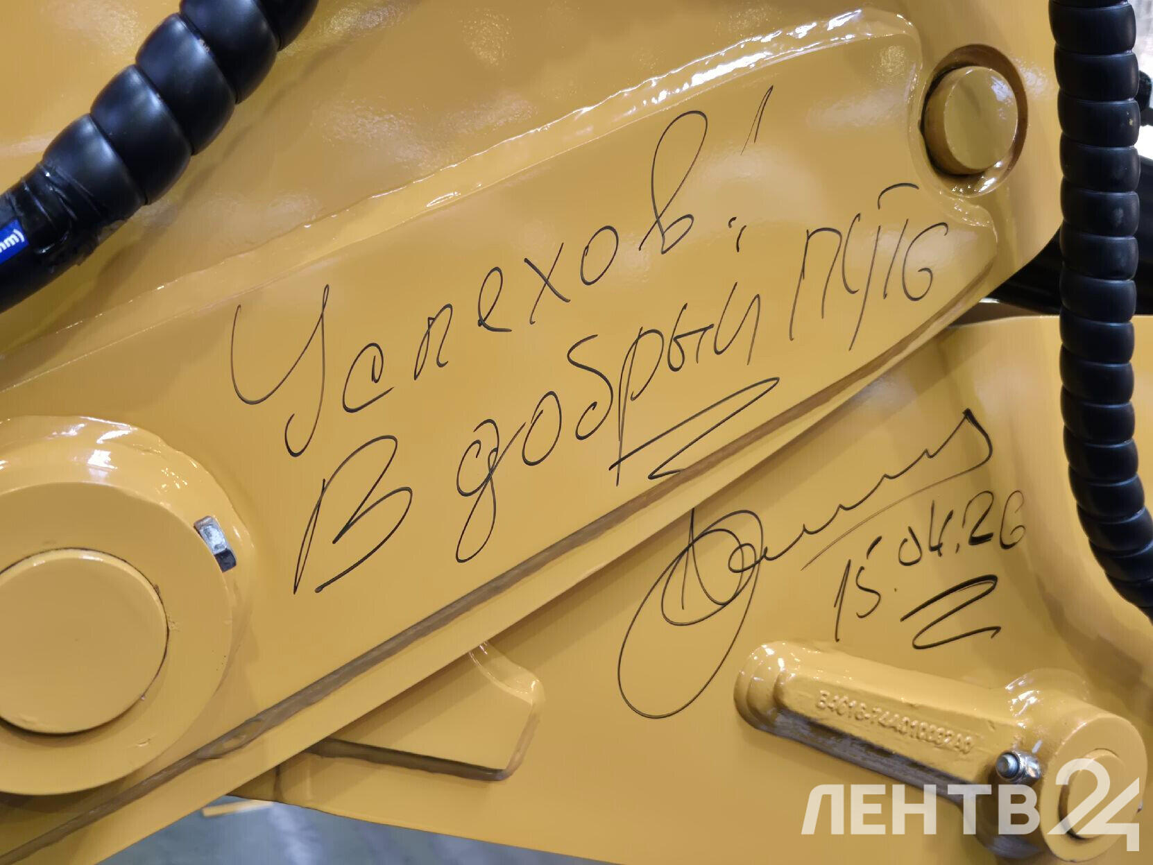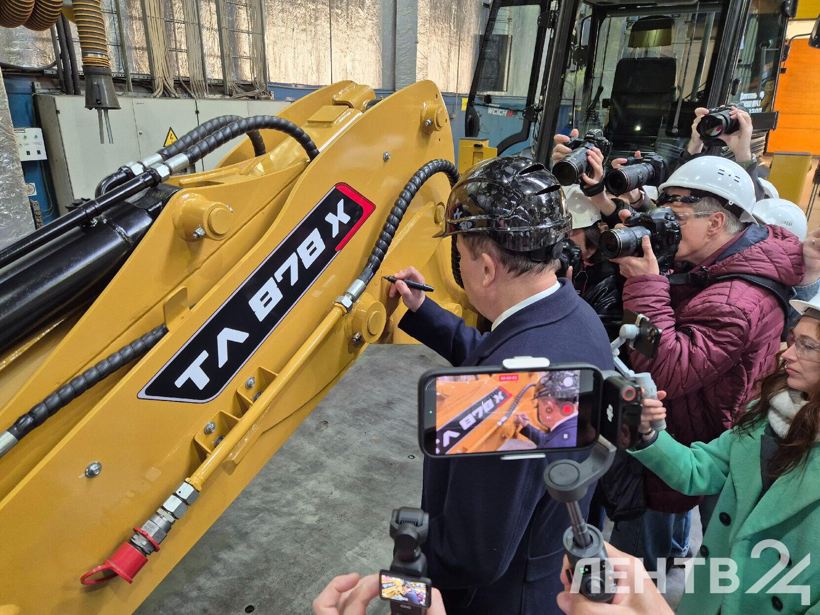 На заводе уже собрали первые машины. Гостям показали готовые экскаваторы-погрузчики, бульдозеры, а также пилотный образец новой техники. Во время осмотра производственных цехов губернатор Александр Дрозденко оставил памятную подпись на одном из тракторов.