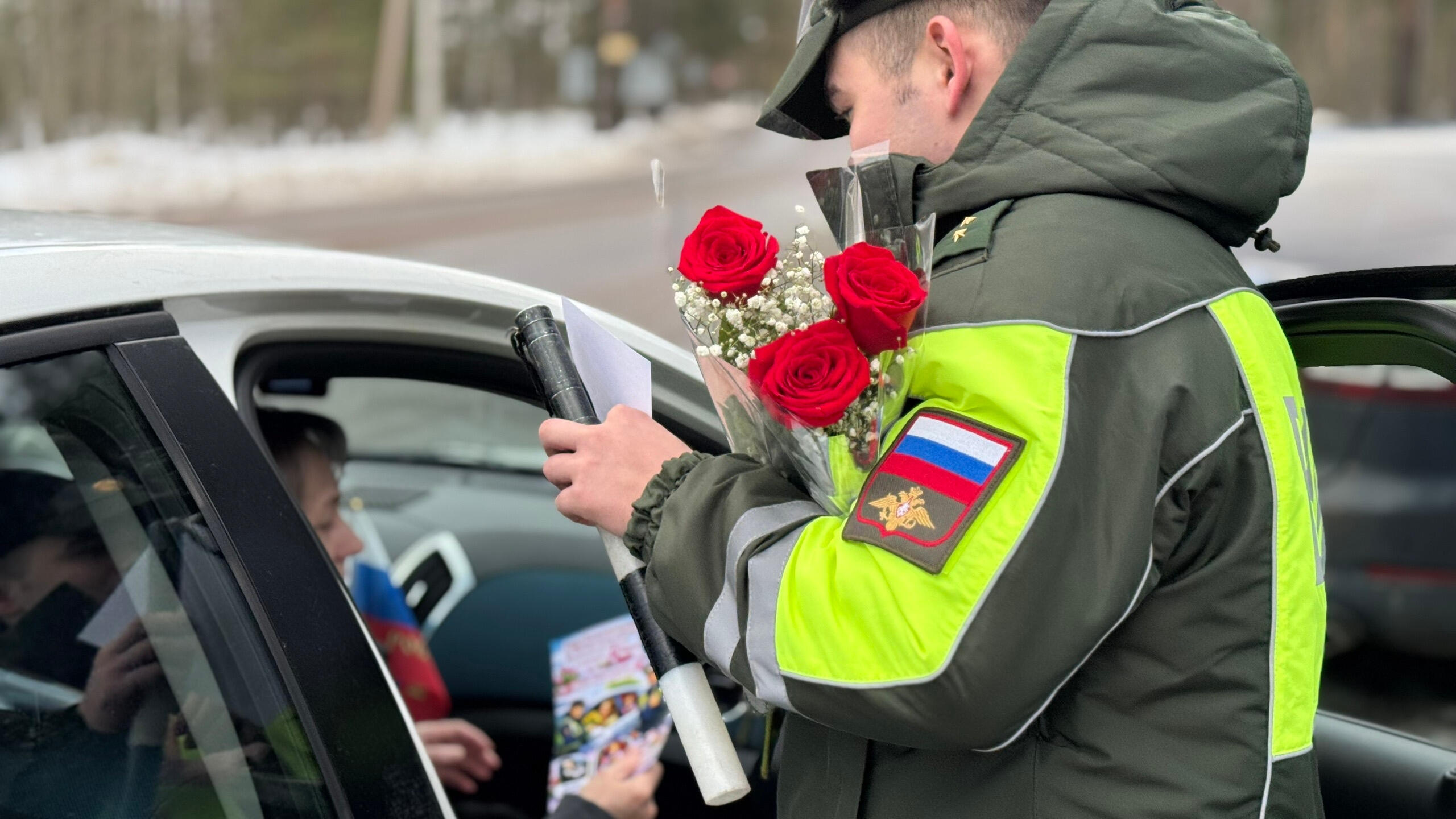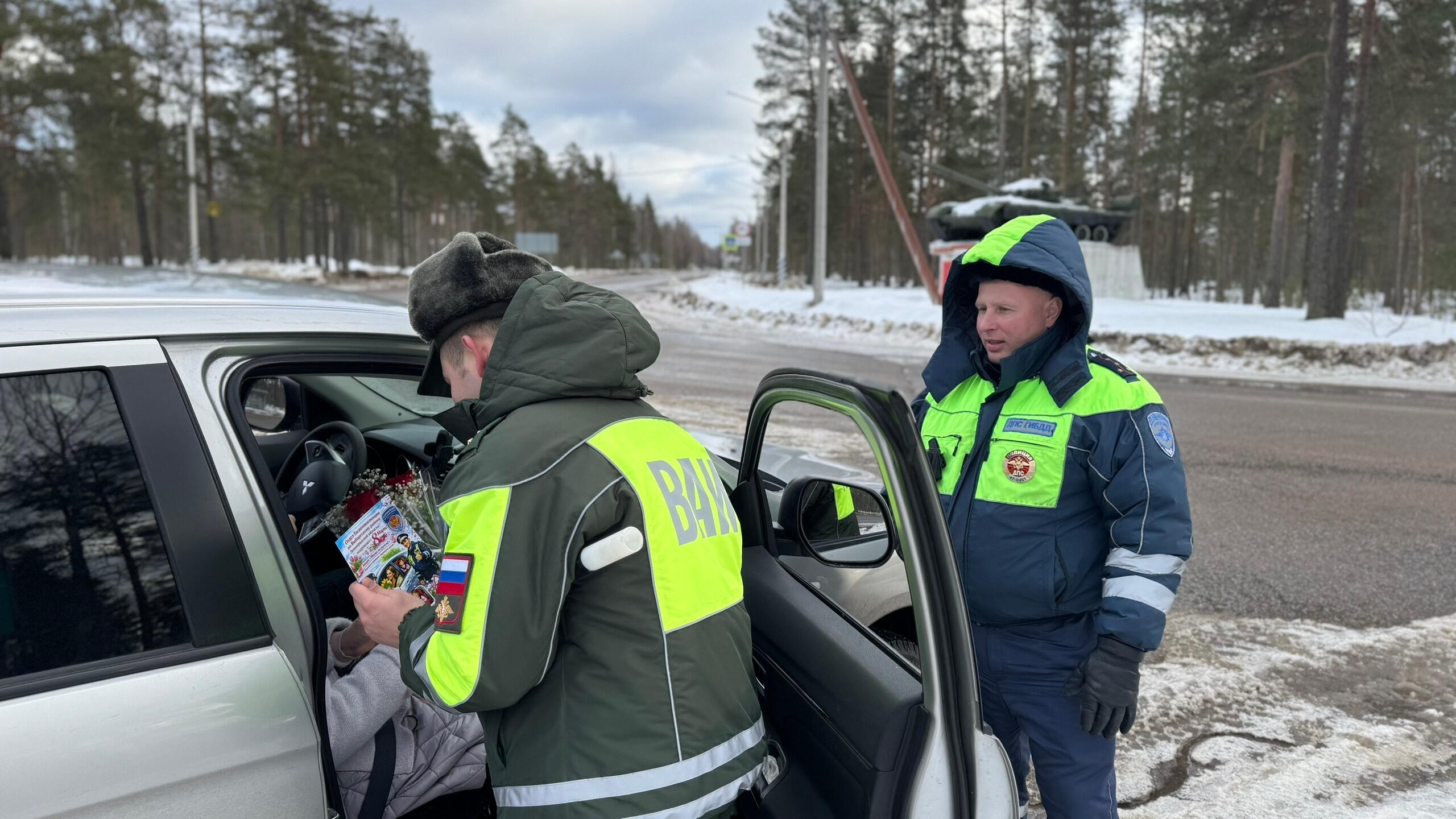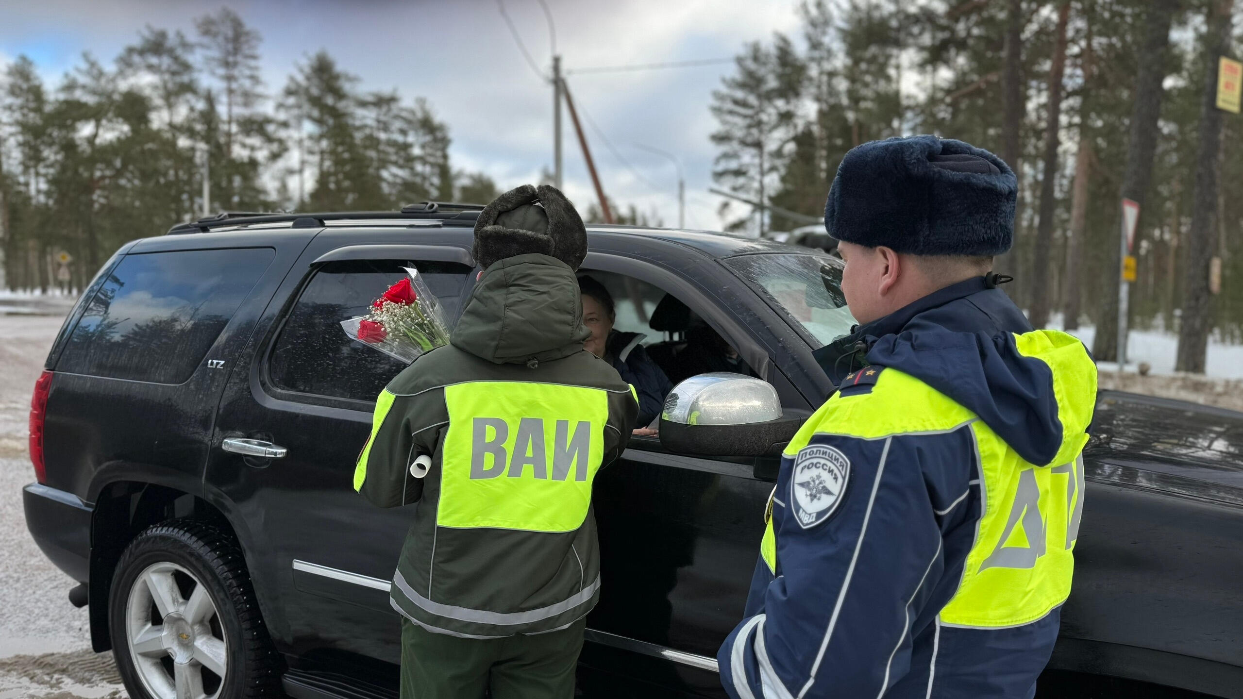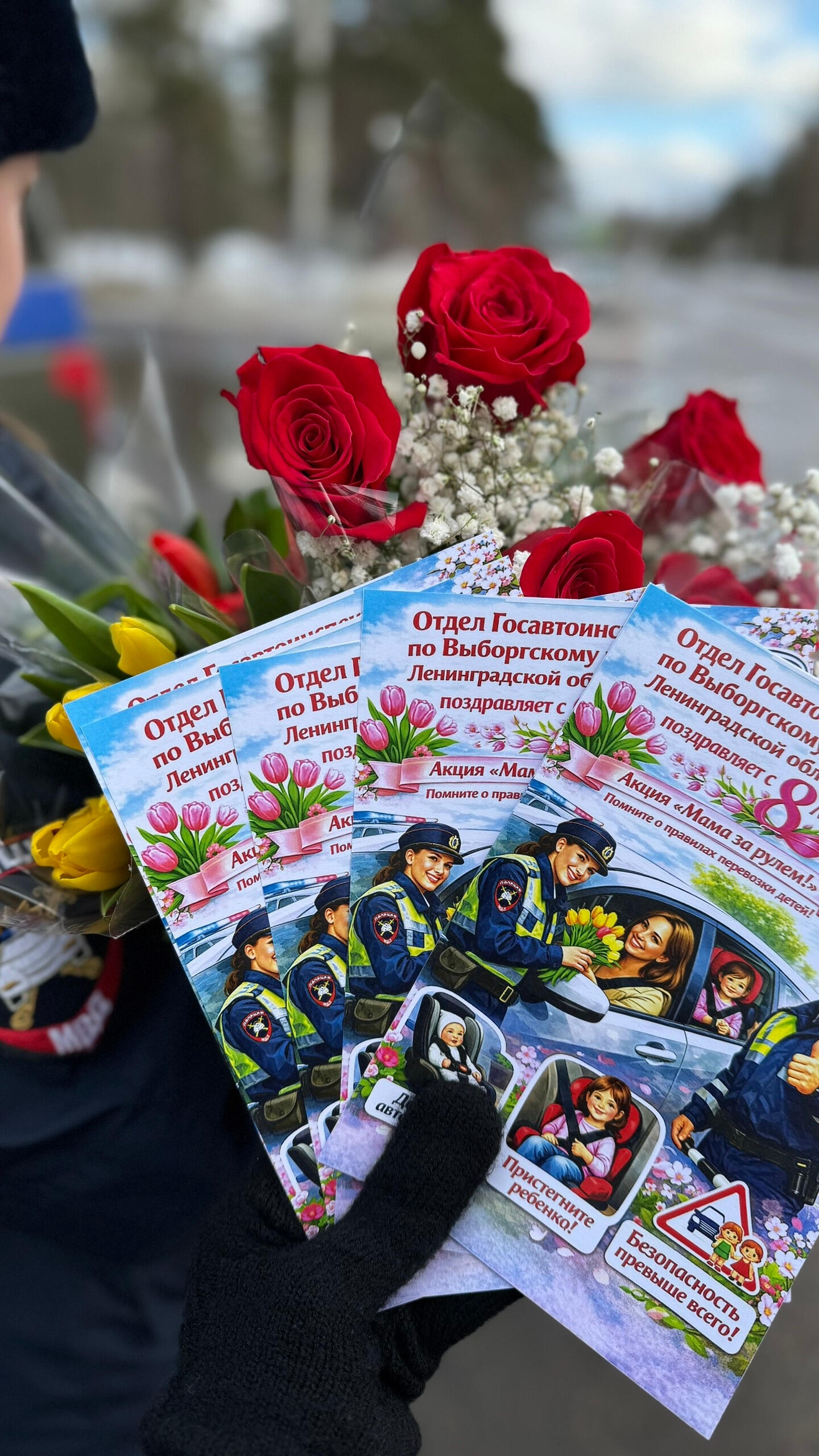 В Выборгском районе сотрудники Госавтоинспекции вручили женщинам-водителям цветы