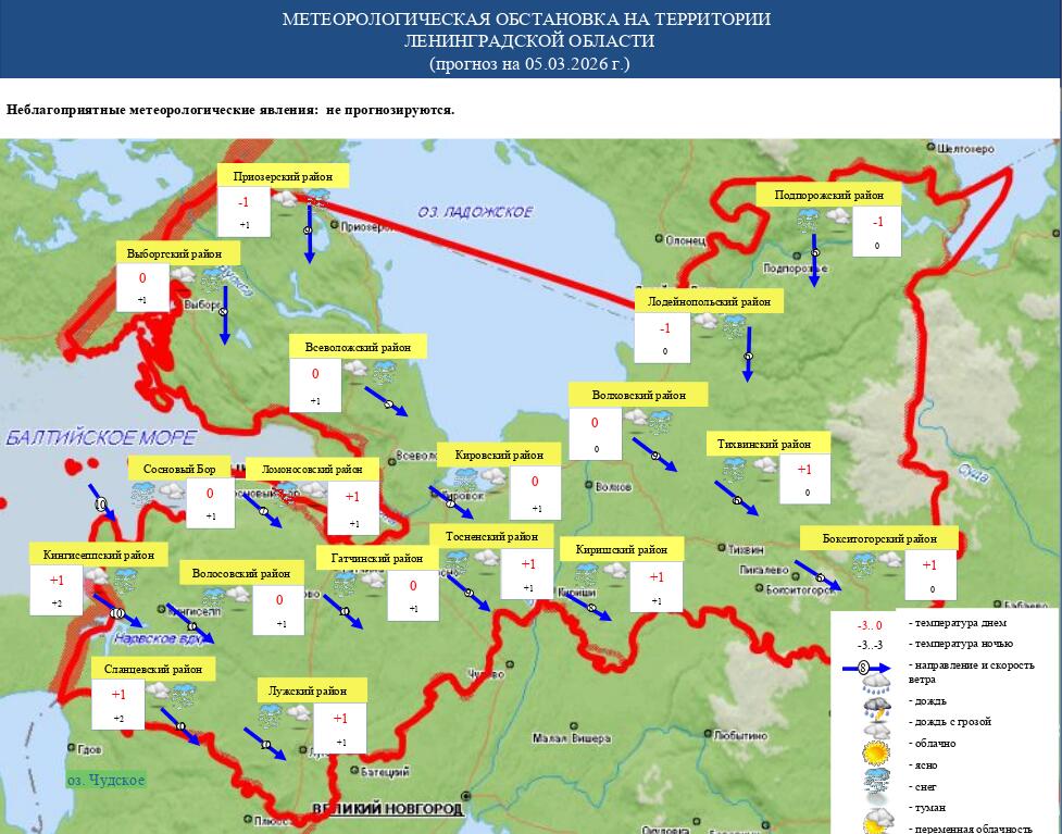 В Ленинградской области в этот четверг, 5 марта, вновь обещают облачную погоду, но днем время от времени будет выглядывать солнце. В большинстве районов ожидаются небольшие осадки в виде мокрого снега или снега.