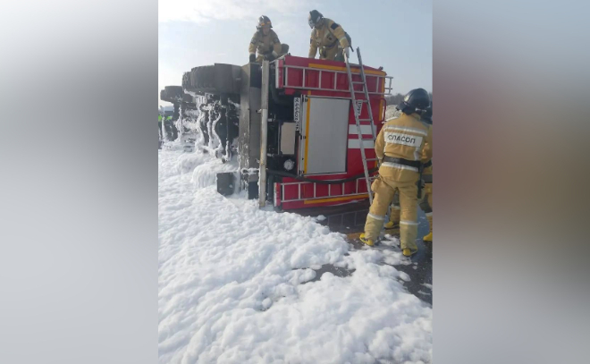 Во время учений в Пулково опрокинулась пожарная машина