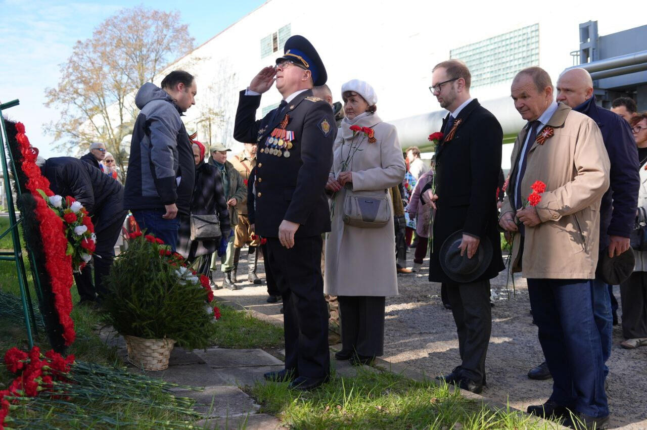 В День Победы сотрудники ЛАЭС возложили цветы к мемориалу у вышки, отдав дань памяти героям, сообщает "Маяк. Сосновый Бор".
