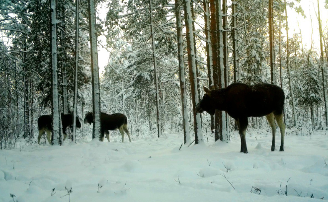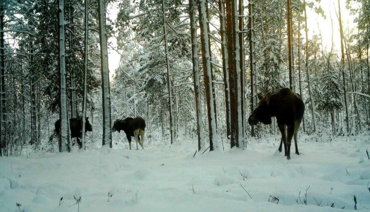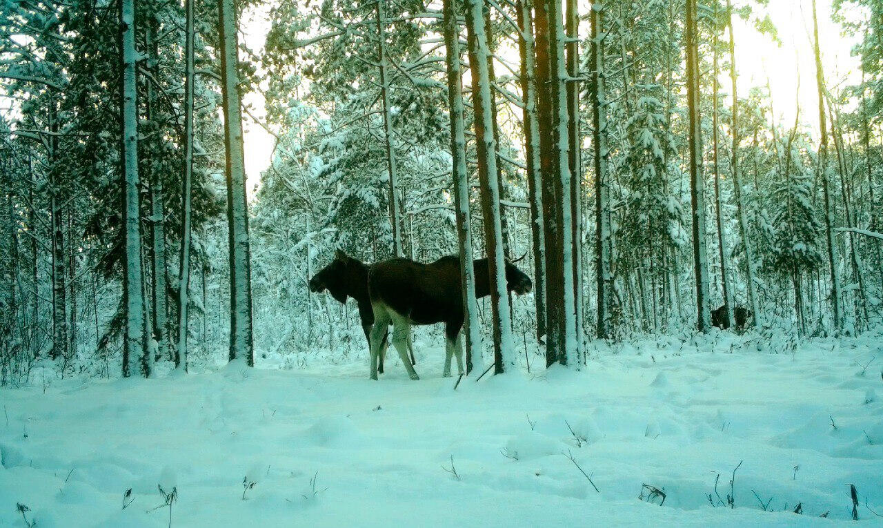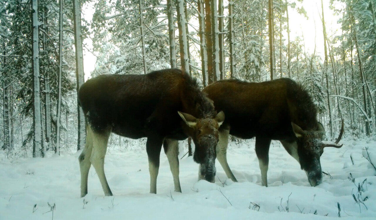 В лесах Ленинградской области лоси объединяются с бывшими соперниками. Такая