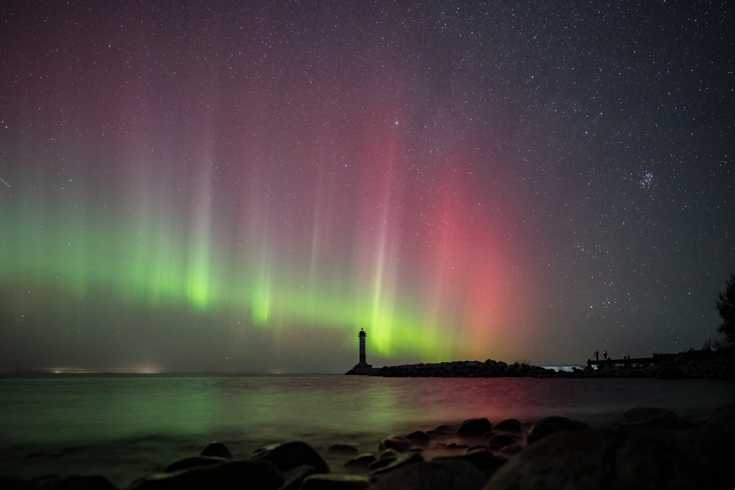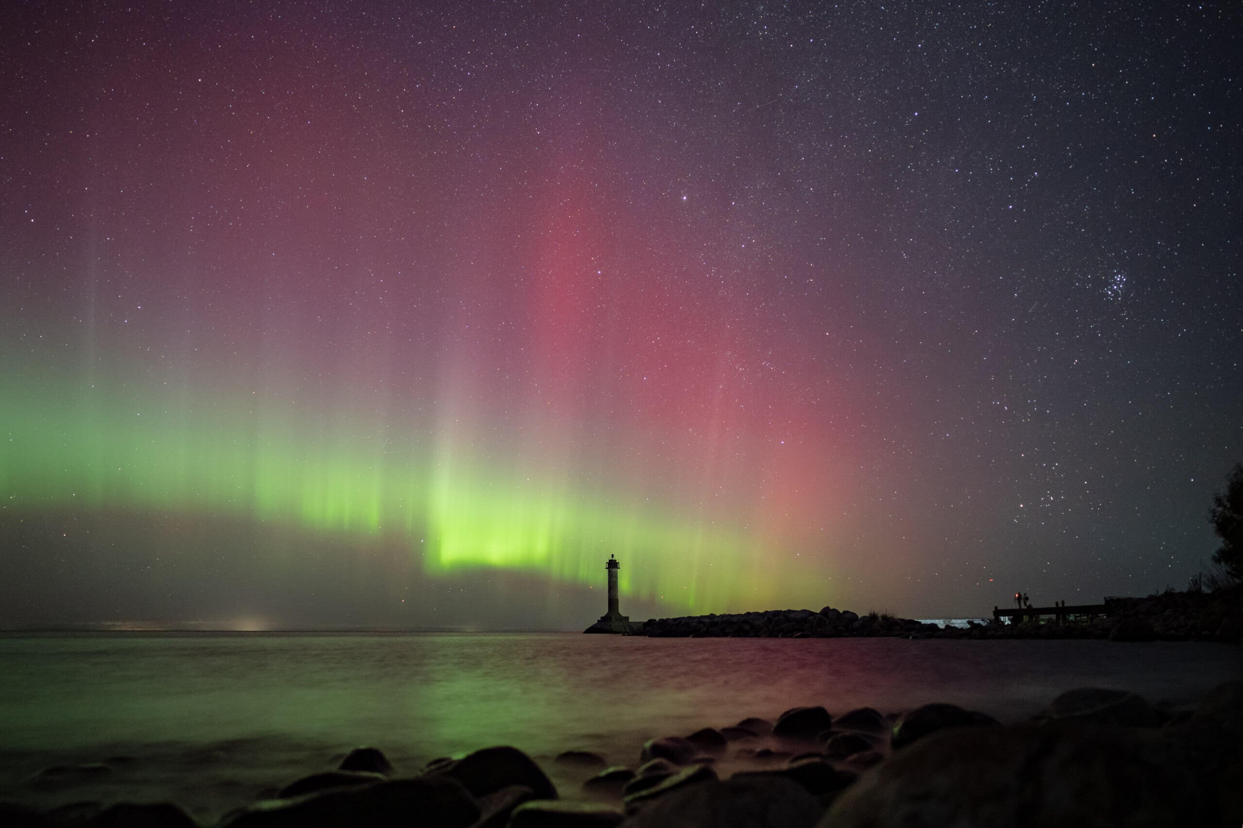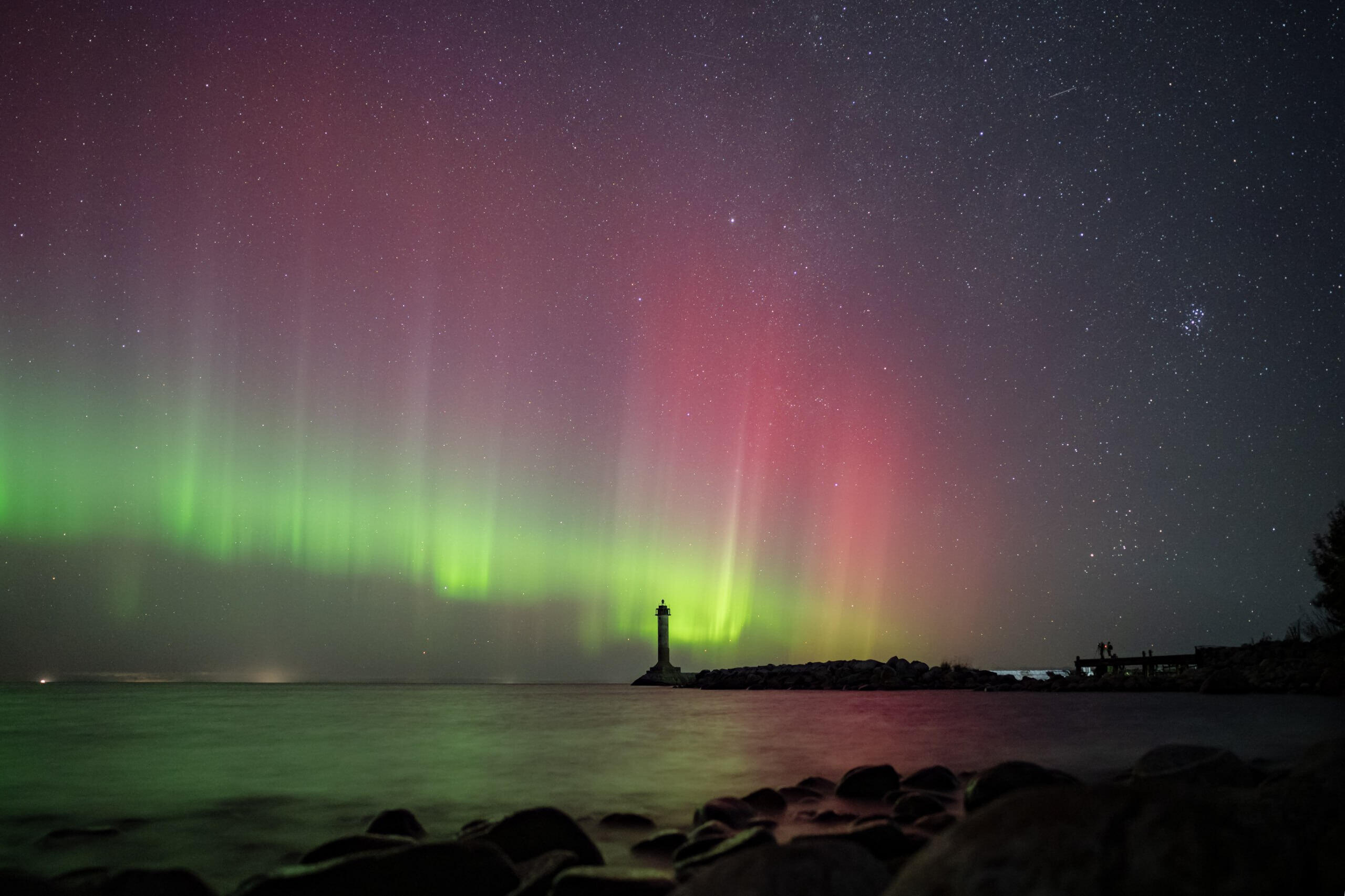 Красно-зеленые огни Авроры окрасили небо над Ладогой