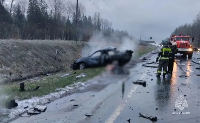 автомобиль загорелся: погибли водитель и пассажир. На место выезжали сотрудники