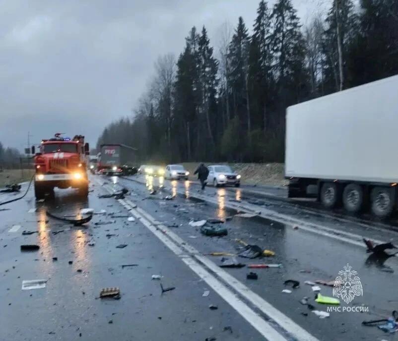 Волховского района. По данным регионального МЧС, лоб в лоб столкнулись грузовик