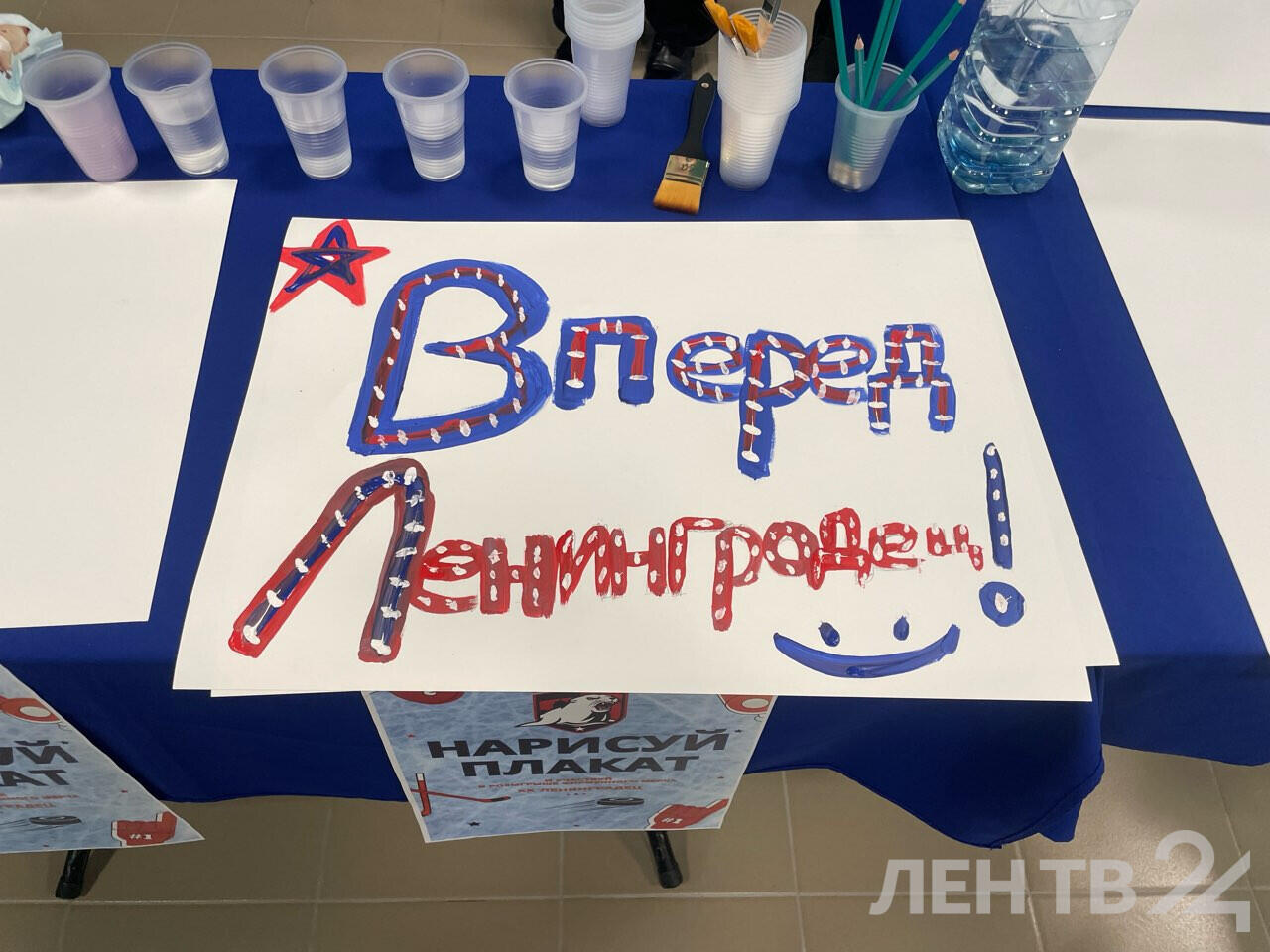 Пока игроки готовились выйти на лёд, болельщики рисовали плакаты в поддержку команде, детям делали аквагрим с хоккейной атрибутикой. Торжественная церемония открытия матча началась с шоу барабанщиц и выступления фигуристов.