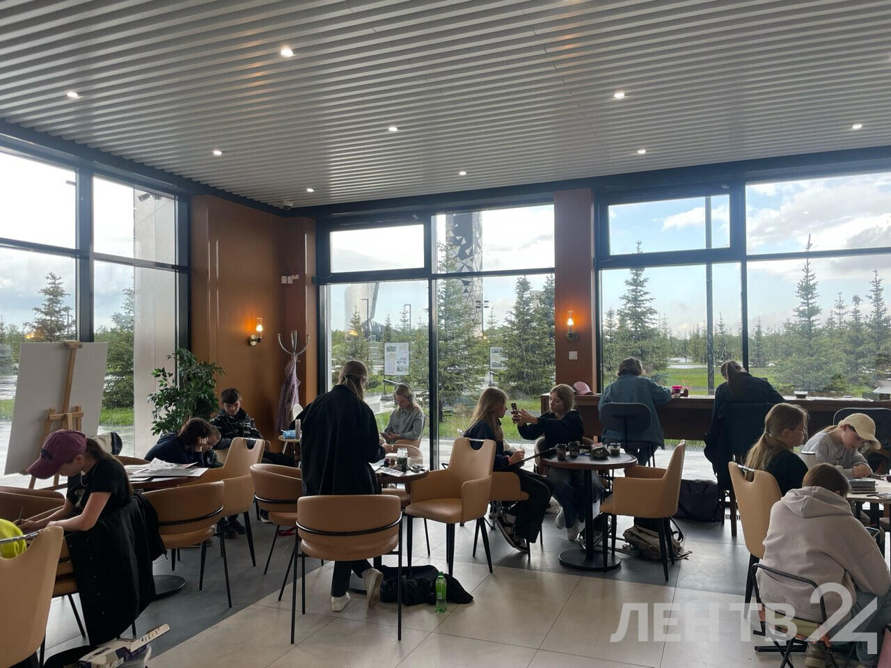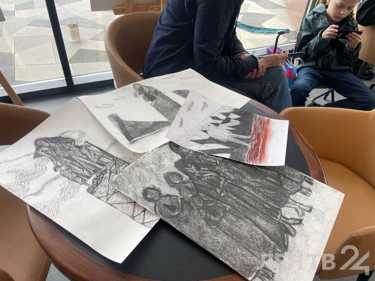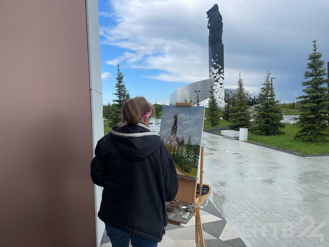 Несмотря на дождливую погоду, творческий процесс не прервался. Участники перебрались в кафетерий возле мемориала и продолжили работу. Всего картины написали 45 художников.