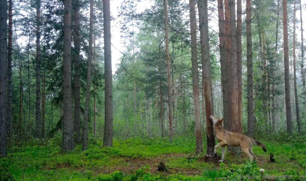 Метящего территорию волка-одиночку запечатлели во Всеволожском районе