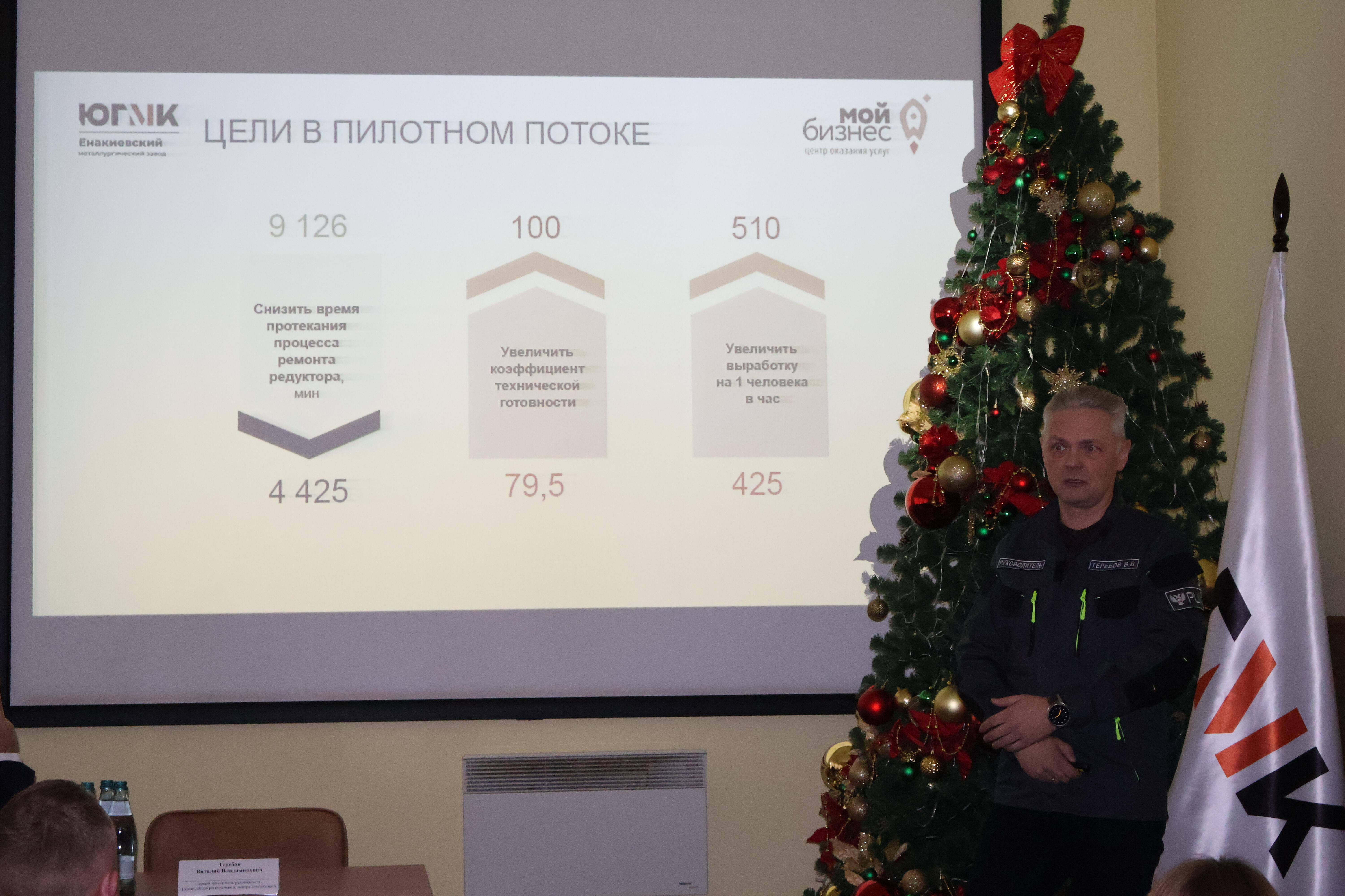 В понедельник, 22 декабря, в филиале № 2 «ЕМЗ» ООО «ЮГМК ДОНЕЦК» состоялся «День информирования». Он посвящался подведению итогов реализации федерального проекта «Производительность труда», реализуемого в рамках национального проекта «Эффективная и конкурентная экономика», за первое полугодие 2025 года. В мероприятии поучаствовали врио министра экономического развития ДНР Александр Ефимов, исполнительный директор ООО «ЮГМК Донецк» Александр Коваленко, эксперты Регионального центра компетенций ДНР, руководители филиала и структурных подразделений, к также члены рабочей группы, задействованные в проекте.