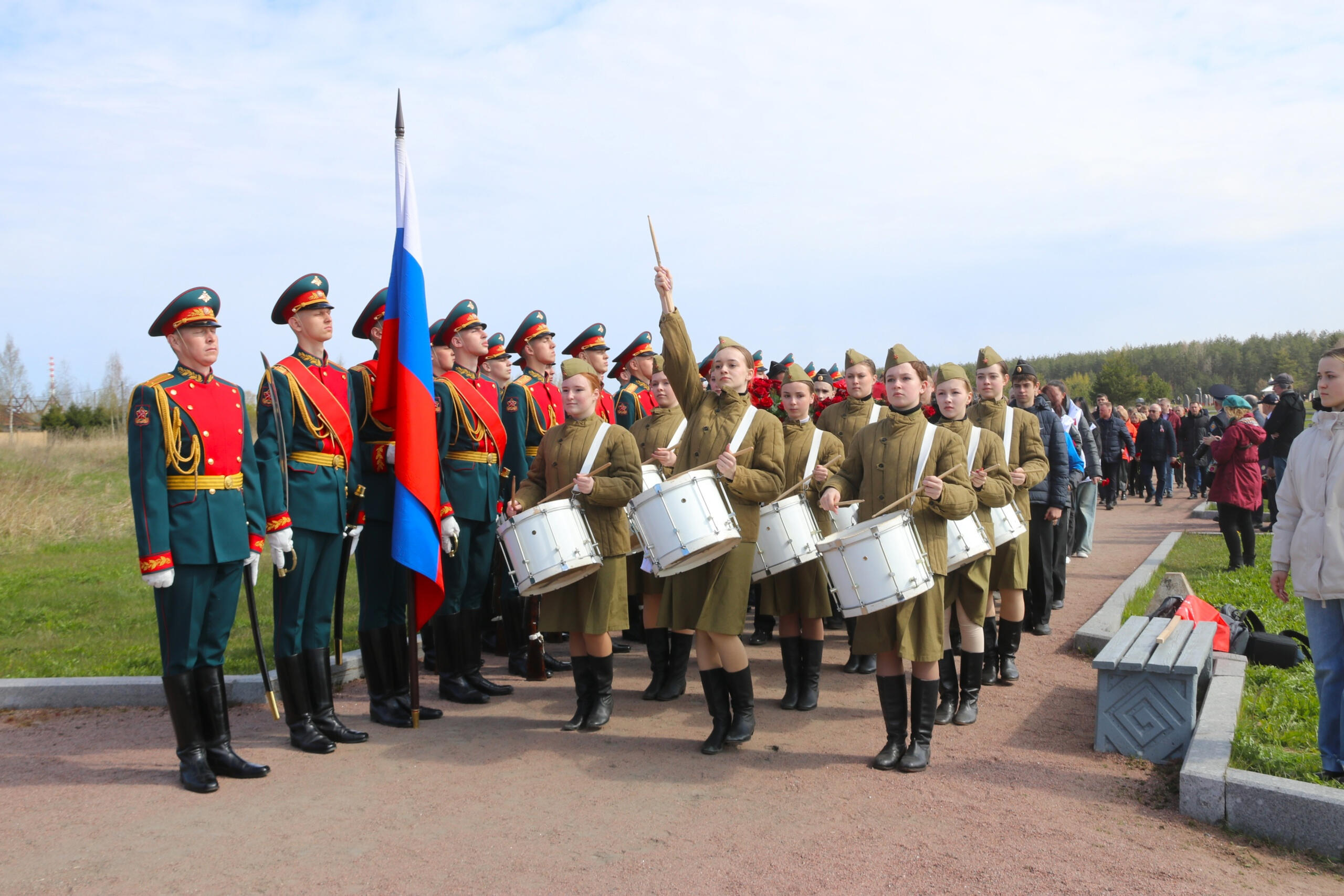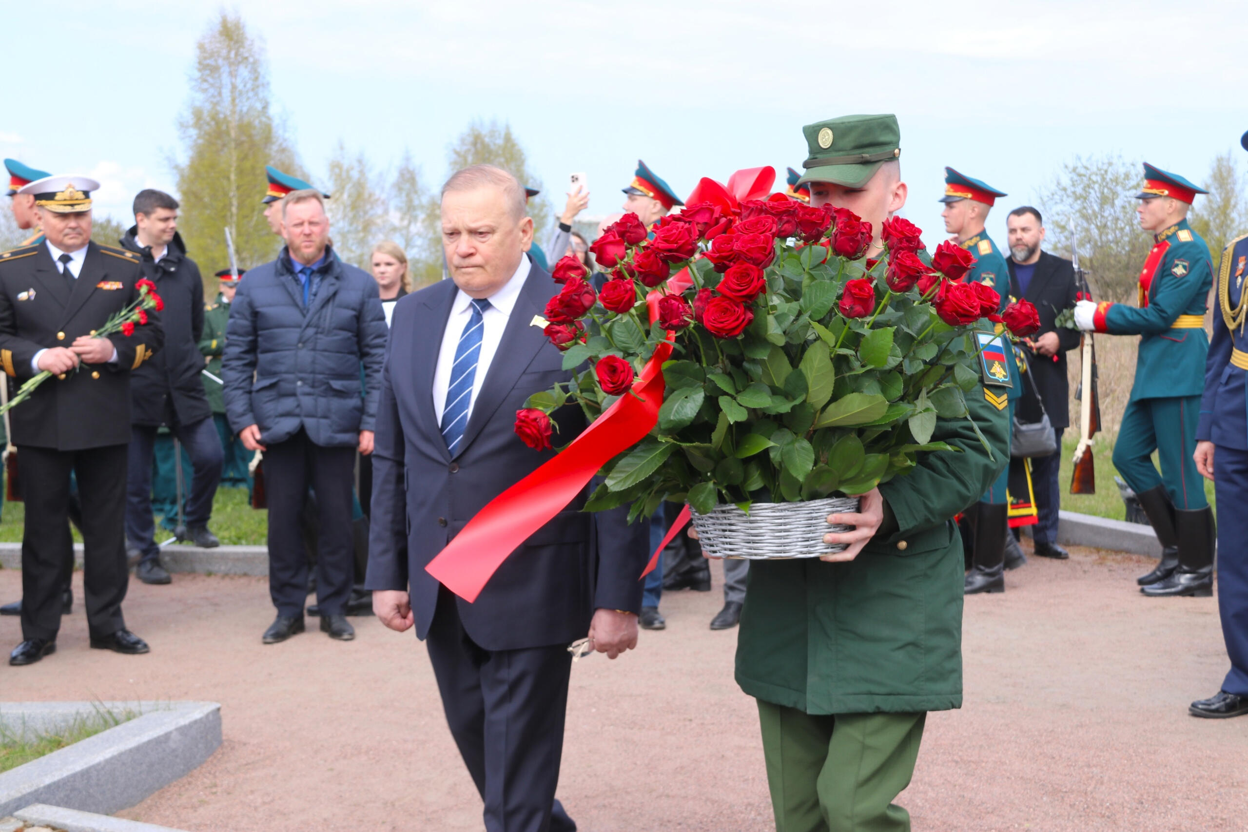 Собравшиеся почтили память погибших минутой молчания и возложили к мемориалу цветы и венки.