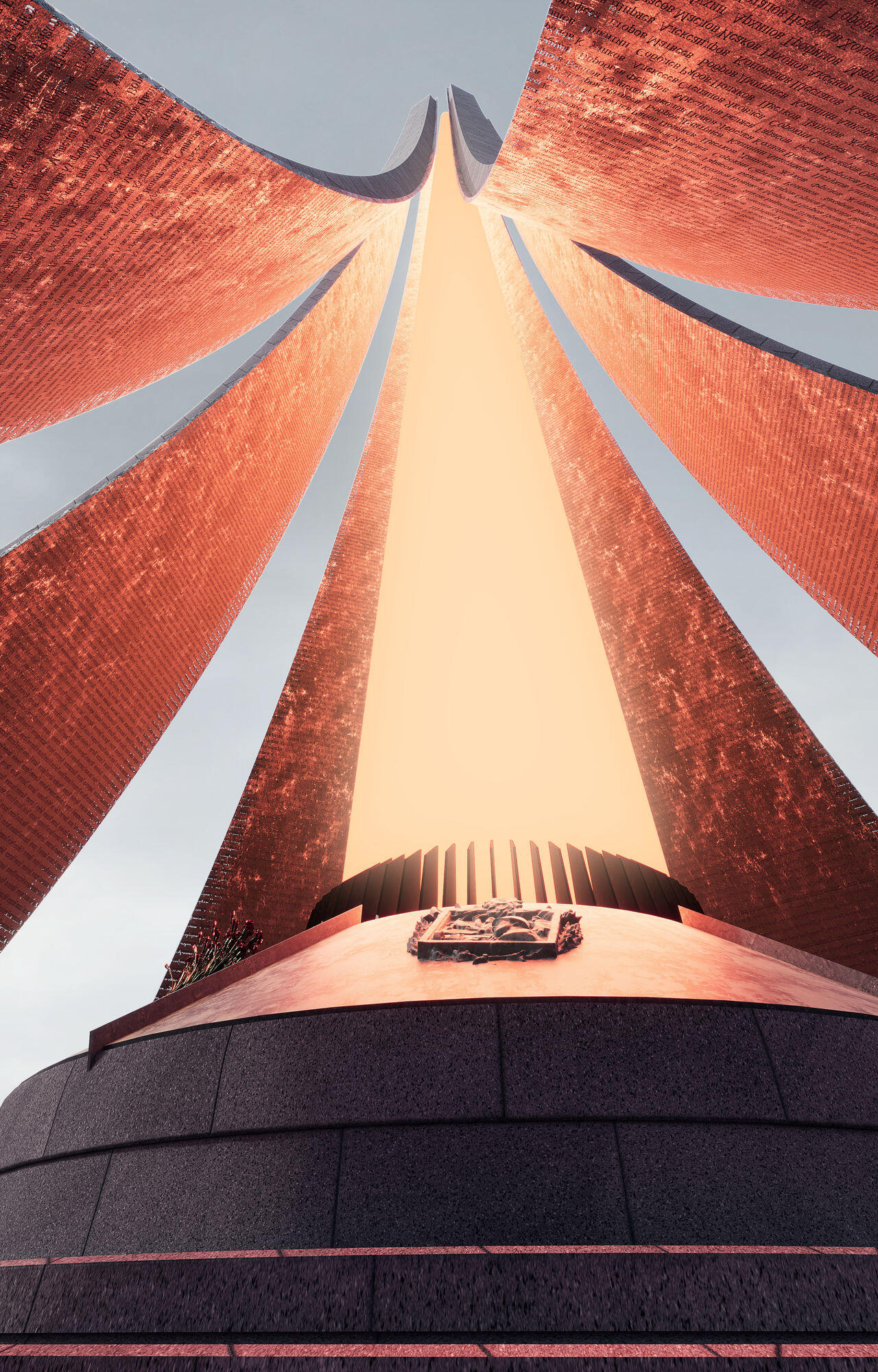 Центральным элементом ансамбля станет 40-метровый гранитный столп в виде устремлённых вверх стрел, символизирующих удары советских войск по фронту. На нём планируют разместить фамилии участников Ленинградской битвы, а внутри — световой луч как символ «вечного огня» или «свечи памяти». Проект предполагает использование мультимедийных технологий, аллей Славы, зон для возложения цветов, а также благоустроенных мест для отдыха.