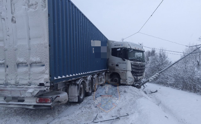 Сегодня, 7 января, на федеральной трассе М-10 в Ленинградской области произошло дорожно-транспортное происшествие с участием грузового автомобиля. Водитель не справился с управлением, в результате чего машина столкнулась со столбом, сообщили в аварийно-спасательный службе региона.