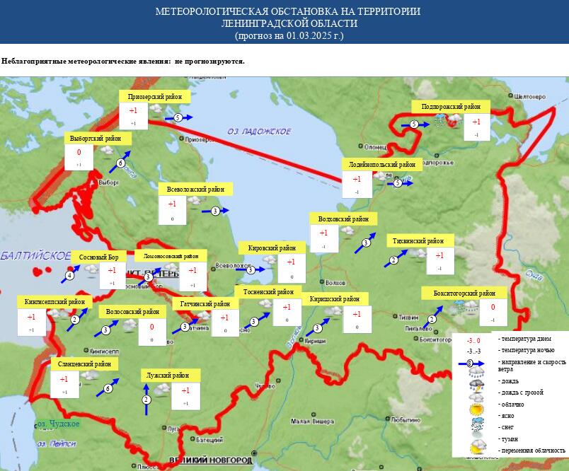 В первый день календарной весны в Ленинградской области ожидается преимущественно облачная погода. Местами пройдет небольшой снег или мокрый снег, в темное время суток и утром также возможен легкий туман.