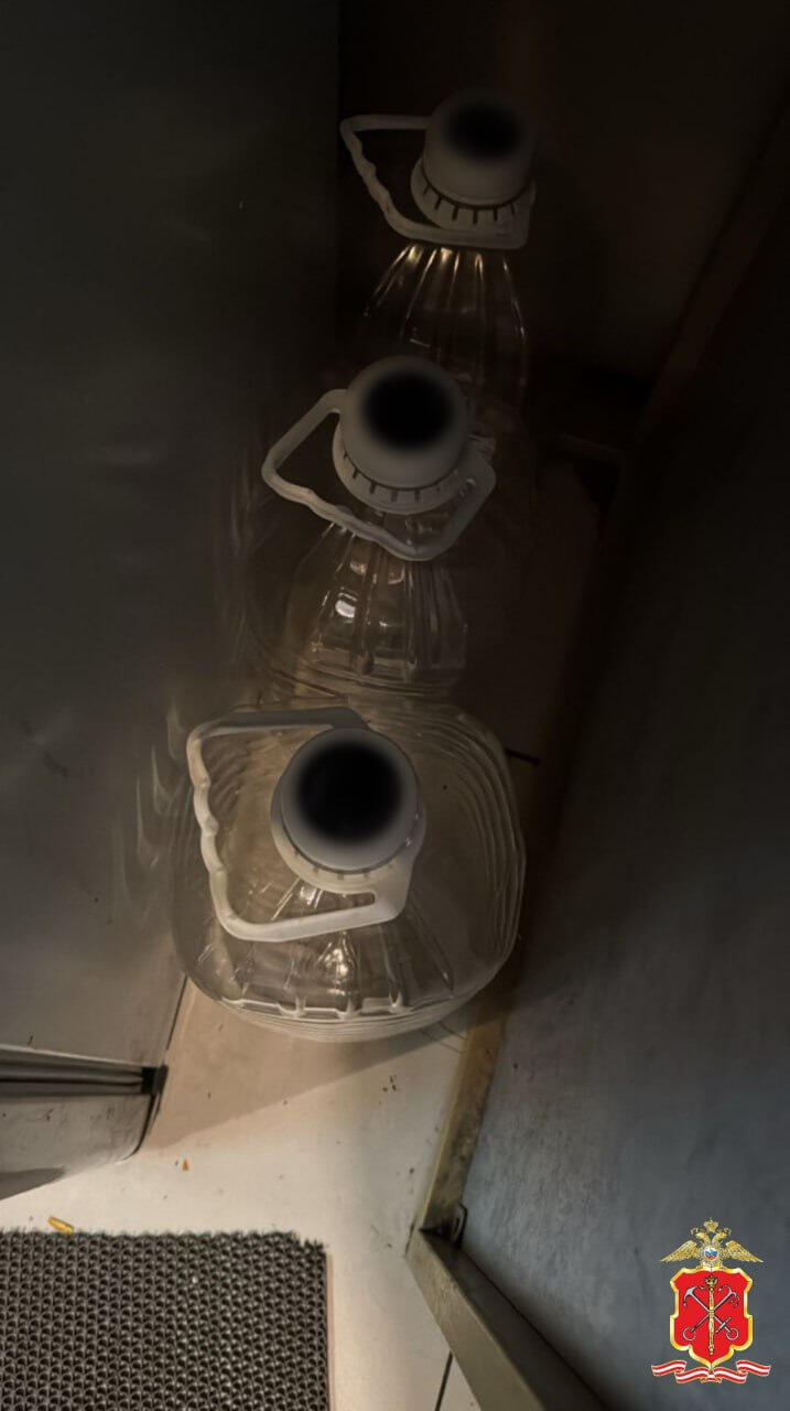 также 25 литров сомнительной спиртосодержащей жидкости, разлитой в пластиковые