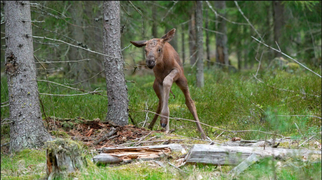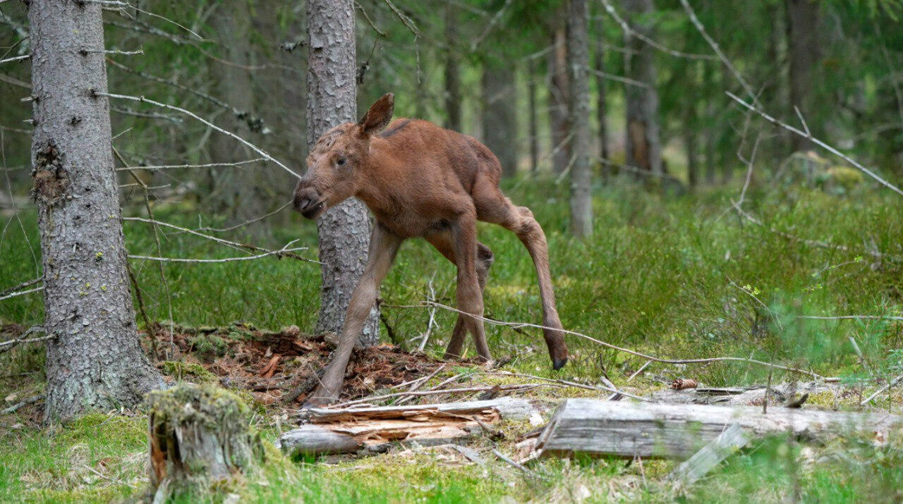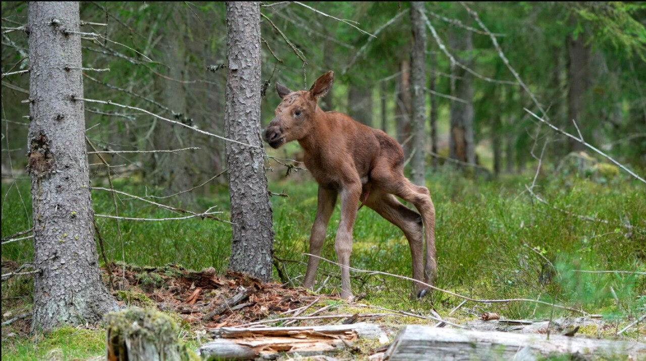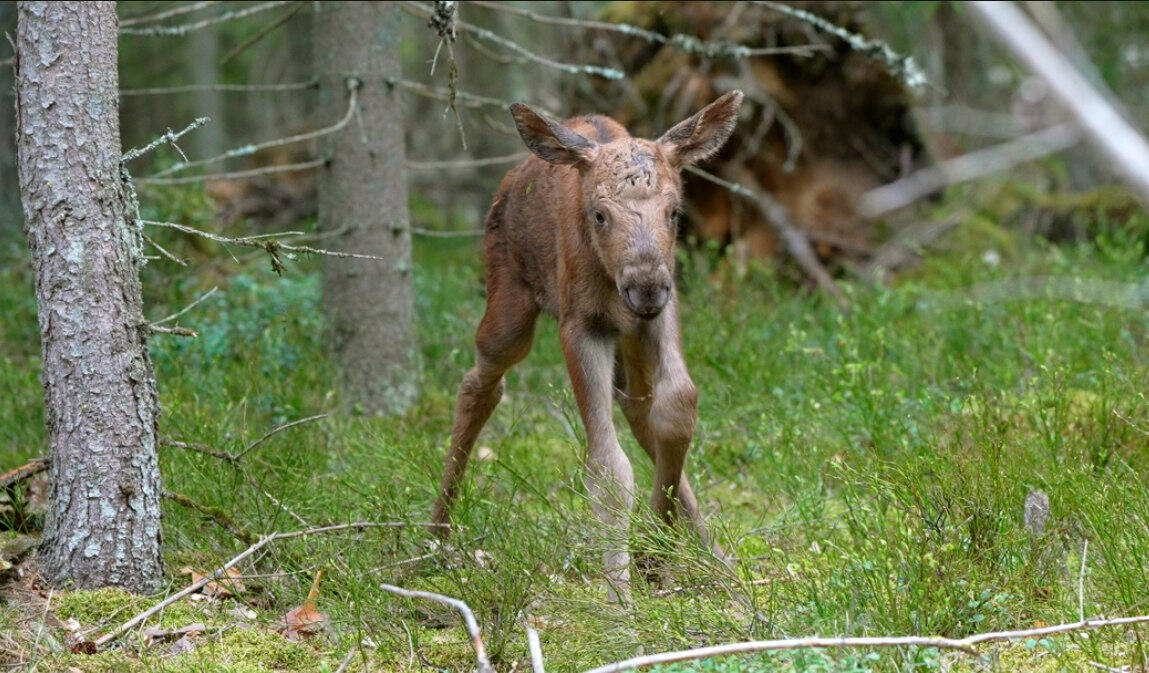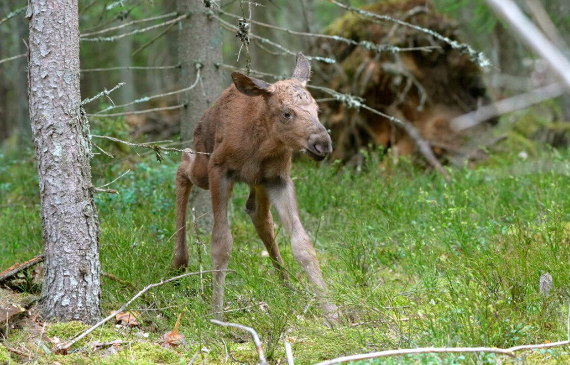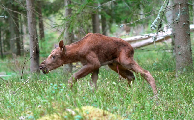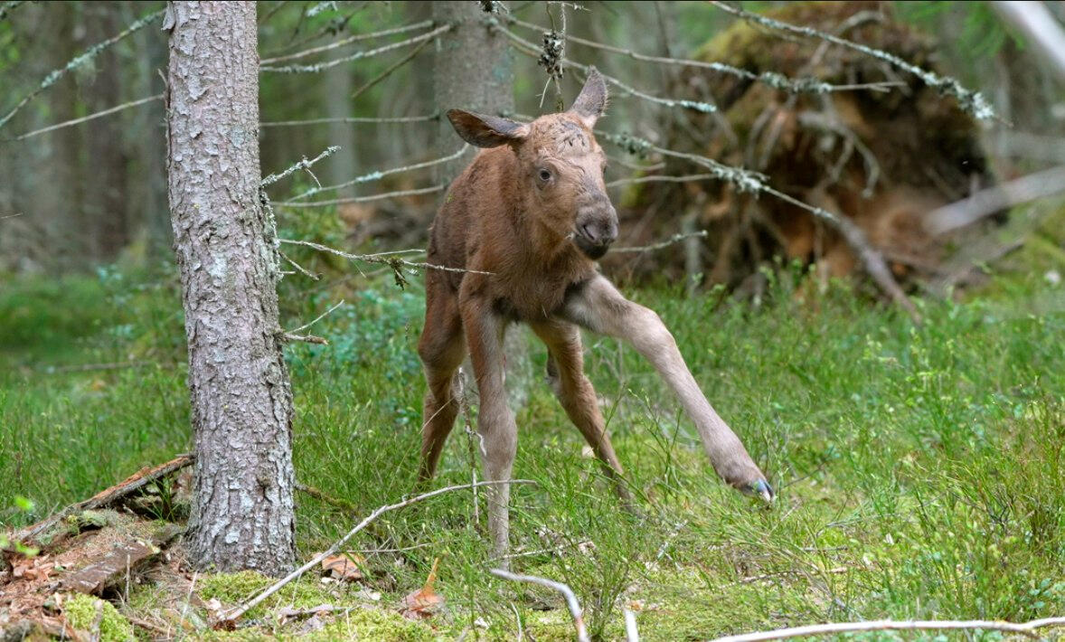 Новорожденный лосенок попал в объектив камеры в Приозерском районе