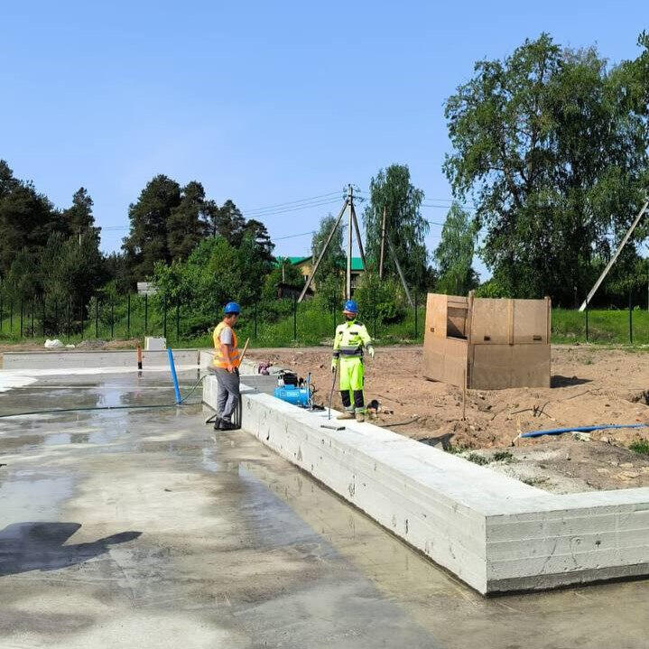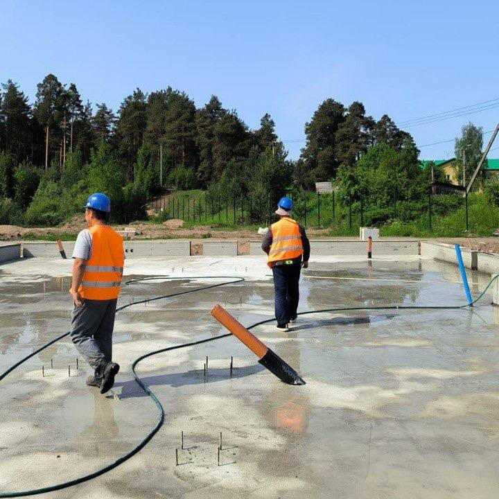 Одновременно с этим идет возведение административного блока, где будут располагаться раздевалки, душевые, медпункт и дикторская. Здесь уже залит фундамент, и сейчас рабочие готовятся начать строительство стен первого этажа.
