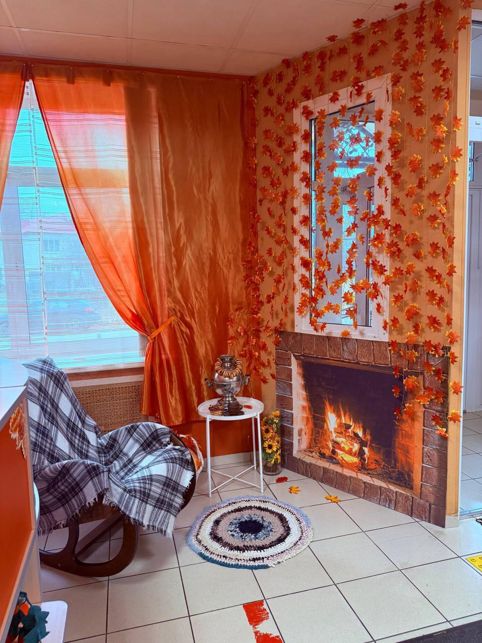 Помещения украсили тематическим декором, где главную роль играет теплый тыквенный оттенок, создающий у посетителей ощущение уюта и праздничного настроения.