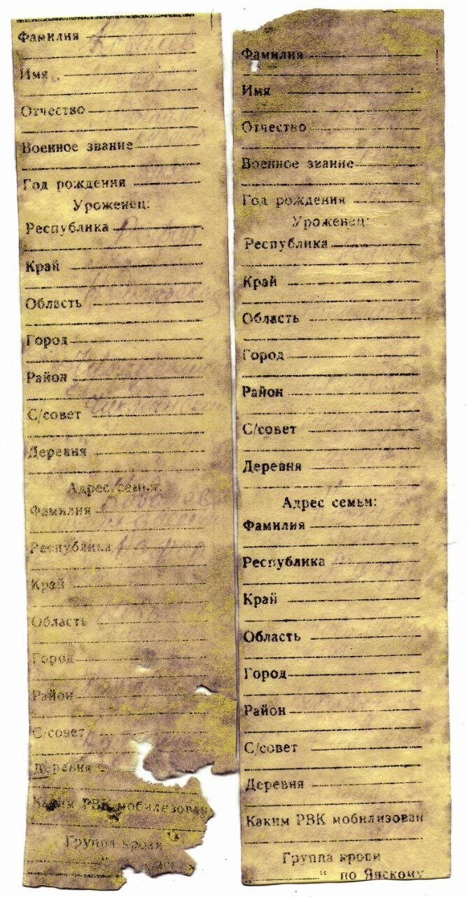При погибших также обнаружены личные вещи. Это две подписные ложки «Д.Павлов» и «Фролков», стеклянная фляга, монеты, кружки, столовый нож, а также три солдатских медальона. По одному из них удалось установить защитника – Павел Михайлович Ковалев, уроженец Новосибирской области, красноармеец-сапер.