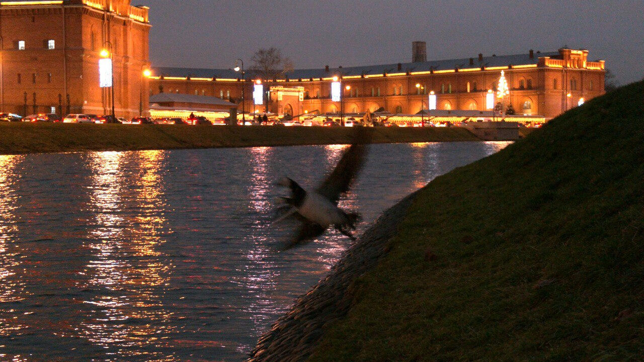 Пара белощеких казарок решила отдохнуть у Петропавловской крепости