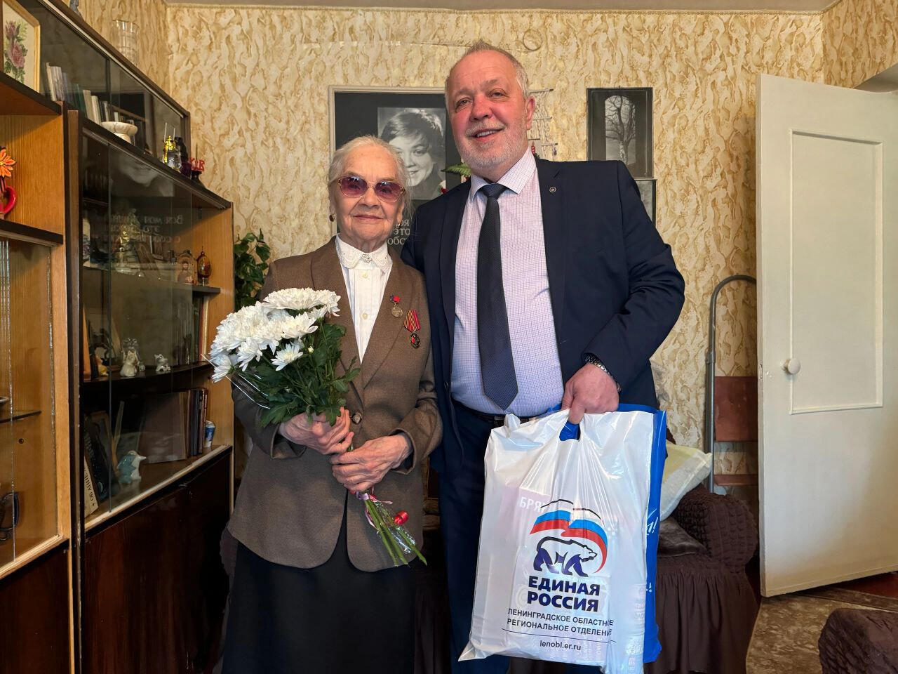 Во всех районах региона активисты, депутаты и волонтеры «Единой России» посетили фронтовиков. В Выборгском районе исполнительный секретарь местного отделения Михаил Макаров поздравил ветеранов и вручил звания Почётных граждан Нине Патрушевой и Клавдии Рассадовской. В Лодейнопольском районе глава района Сергей Баранов поздравил с праздником заслуженного учителя Галину Котову и заслуженного врача Геннадия Кондратьева.