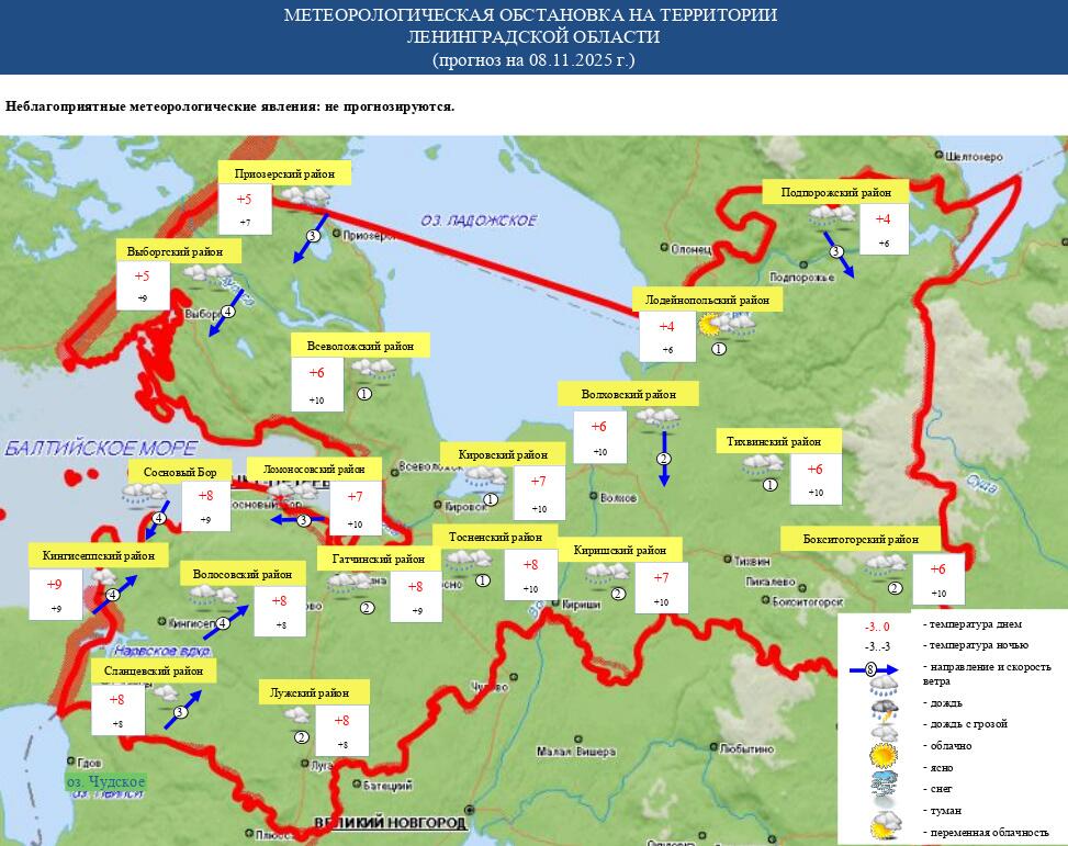 Пасмурно и дождливо, но еще довольно тепло: прогноз погоды в Ленобласти на 8 ноября