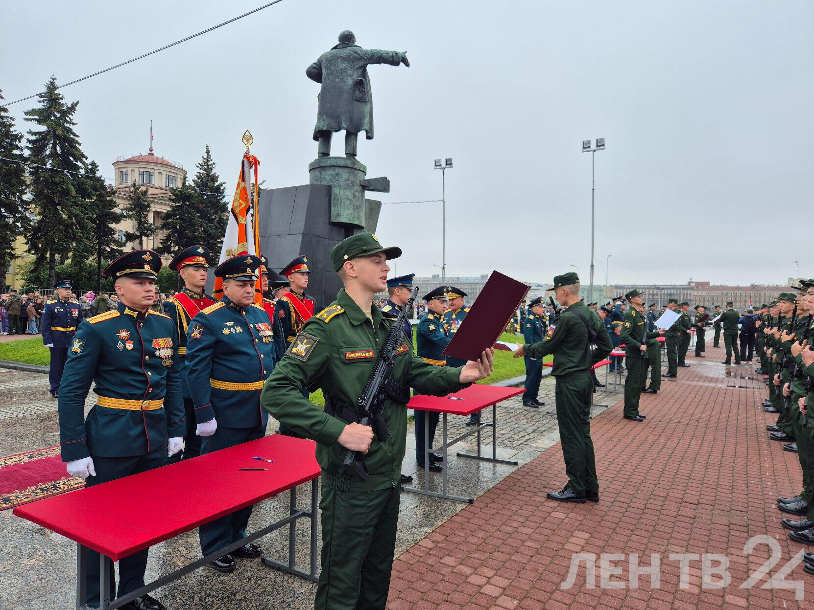 На площади Ленина проходит торжественная церемония приведения к военной присяге первокурсников Михайловской военной артиллерийской академии. В этом году ее курсантами стали более 1000 человек. Это выпускники суворовских училищ, кадетских классов, юнармейцы, военнослужащие по призыву и участники специальной военной операции.