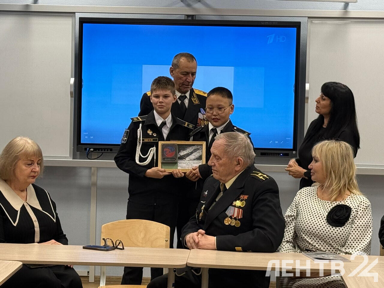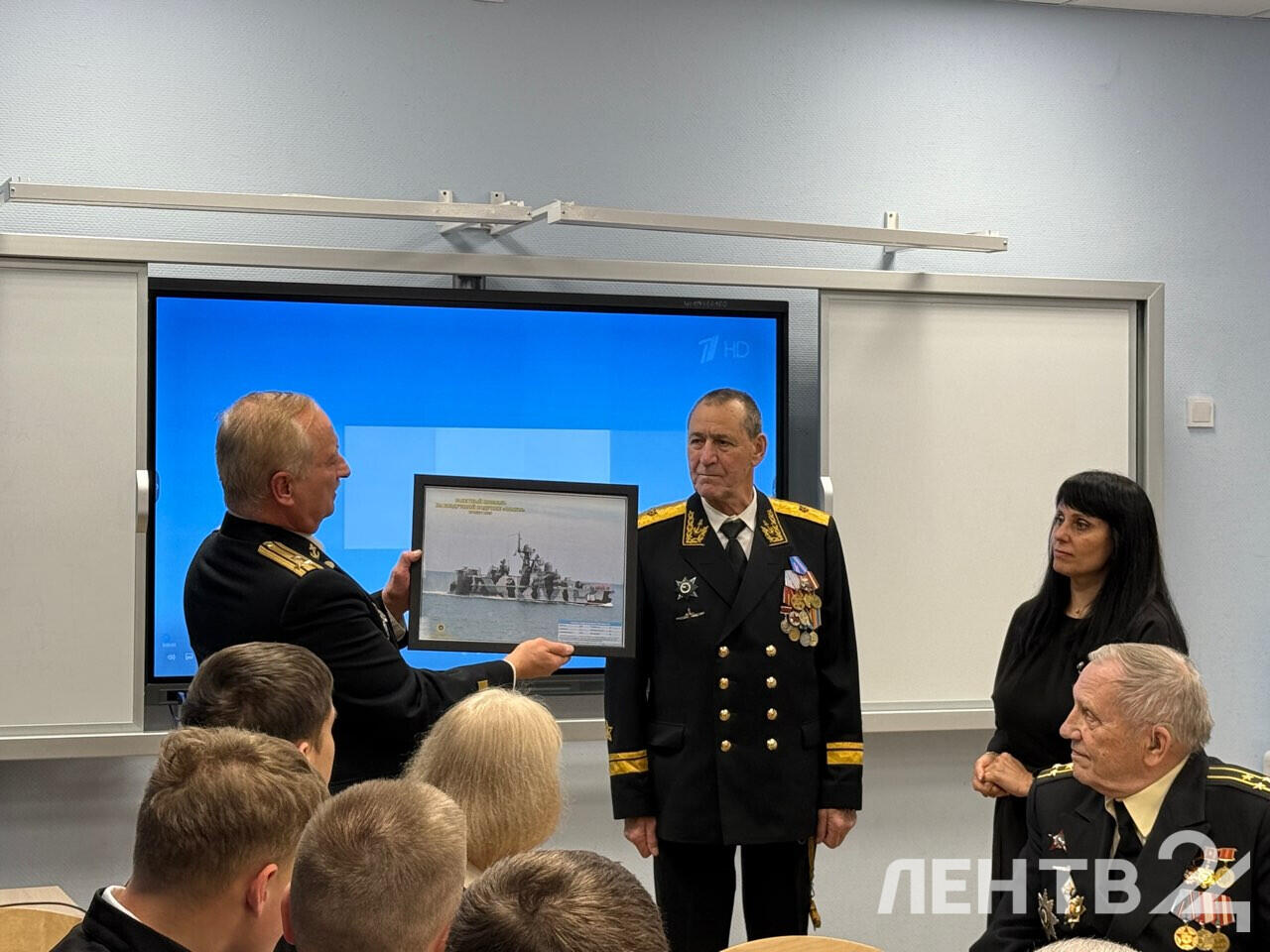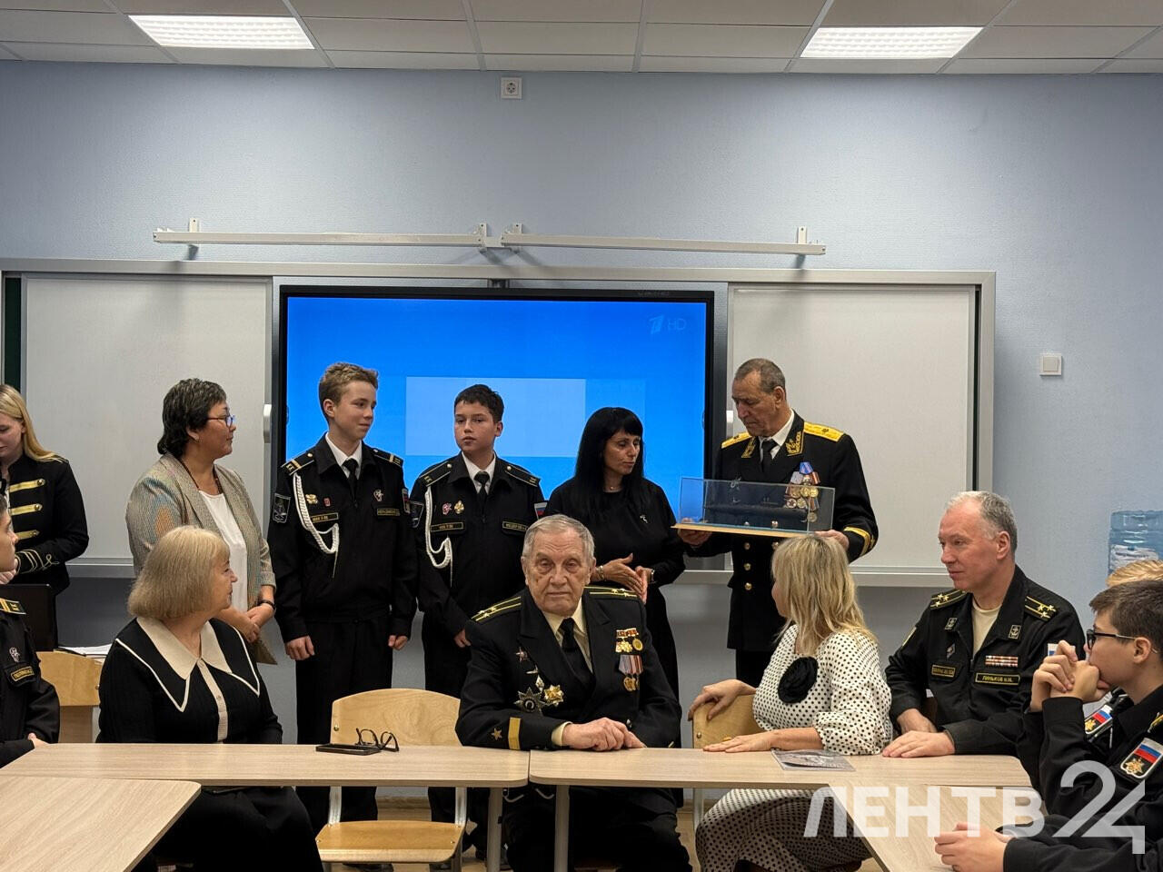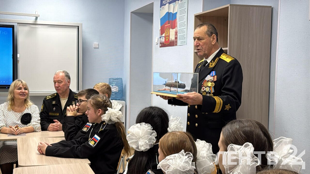 Участники встречи рассказали о своём опыте службы, поделились интересными историями и ответили на вопросы учеников морских кадетских классов. Почетные гости также вручили подарки школьному музею – макет подводной лодки и капсулу с морской водой с места гибели подлодки.