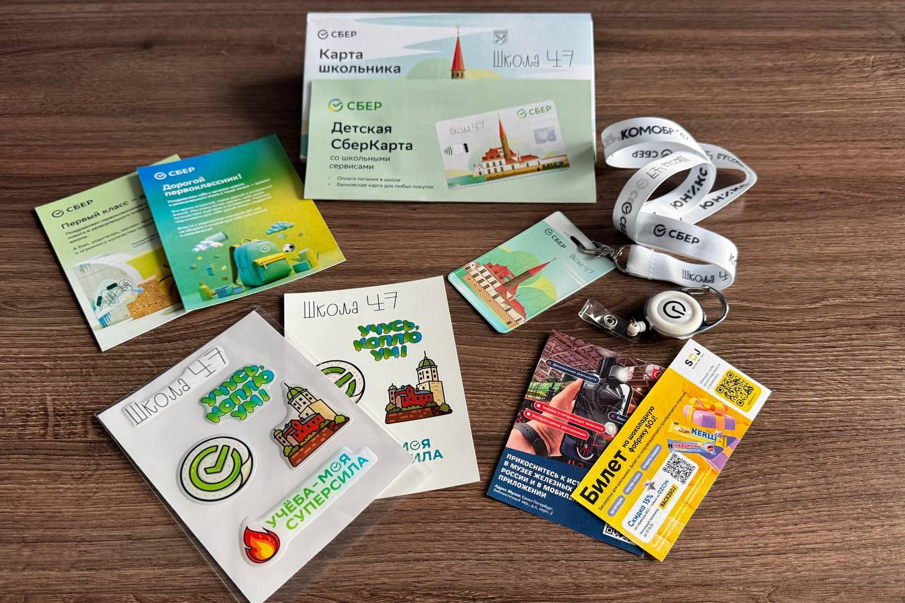 Как рассказали в комитете образования Ленобласти, дополнительно в комплект вошлм пазл с «велком-паком», куда включена карта «Школа47» от Сбербанка, а также стикерпаки, наклейки и картхолдер с изображением достопримечательностей региона. Детей порадуют и приятные бонусы. Это билеты в музей РЖД, на шоколадную фабрику SOJ и другие полезные сюрпризы.
