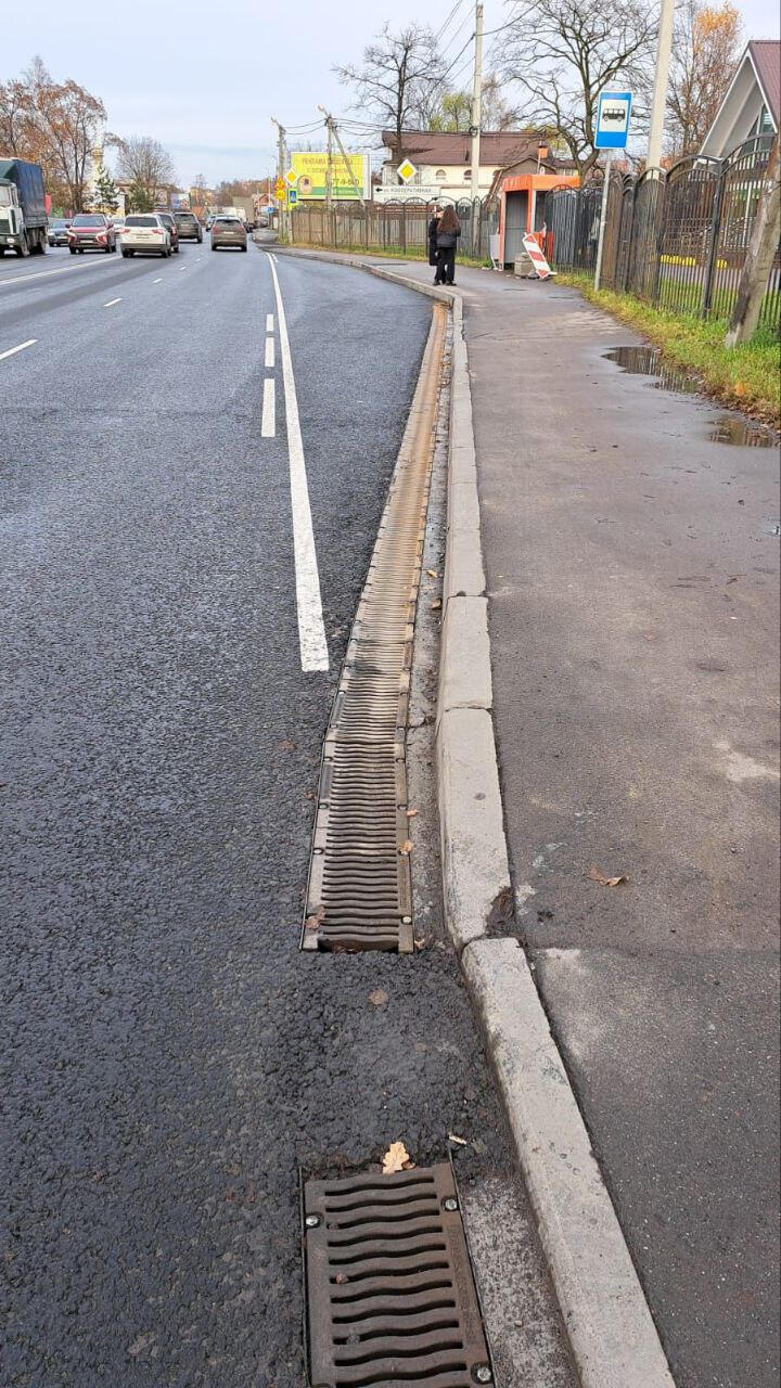 Сейчас дорога полностью отремонтирована: заменено покрытие, устранена колейность и ямочность, а также установлена ливневая канализация, чтобы не допускать скопления воды.