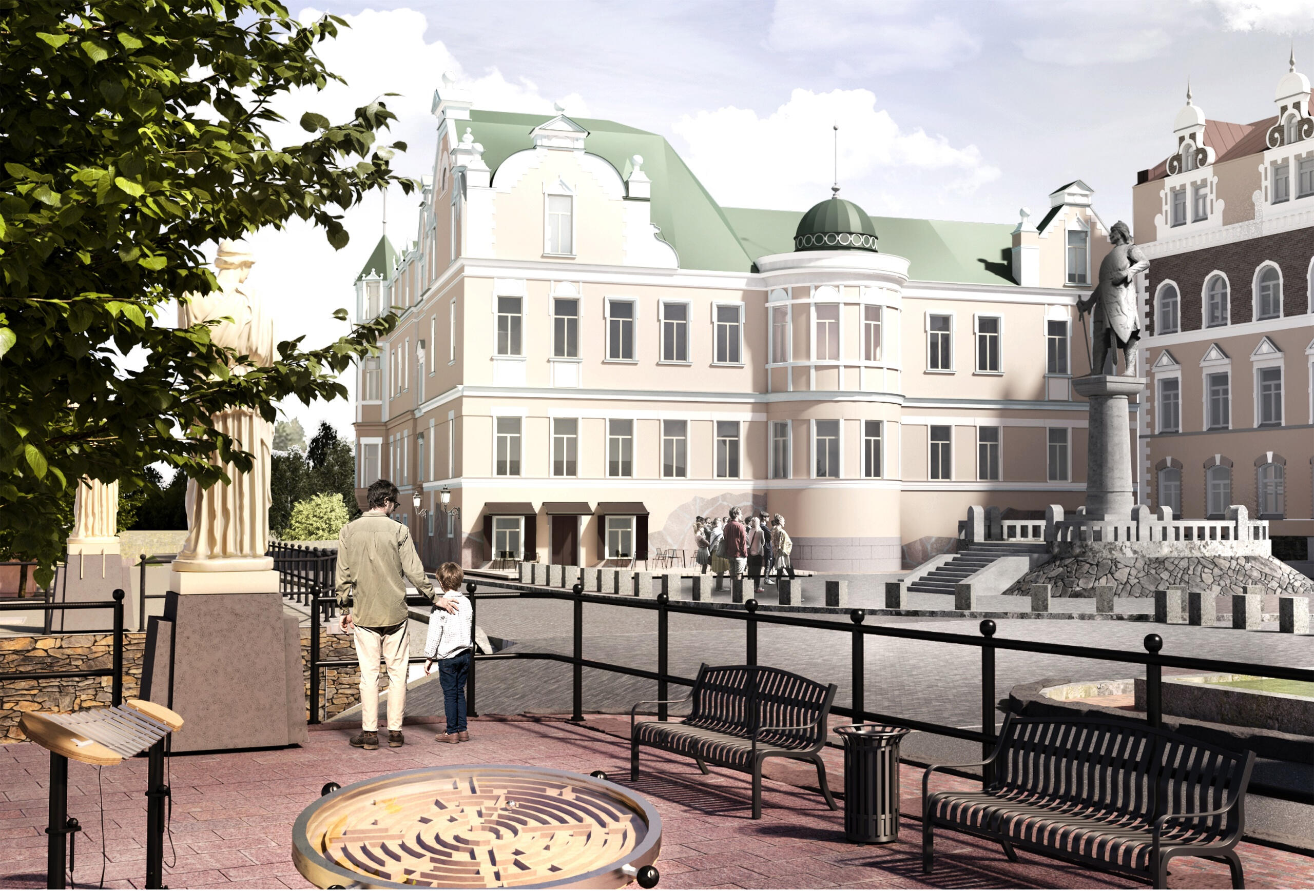 На Ратушной площади планируется восстановить историческое мощение и ограждение вокруг памятника Торгилсу Кнутссону. Существующую смотровую площадку с видом на замок дополнит бронзовый макет средневекового Выборга.