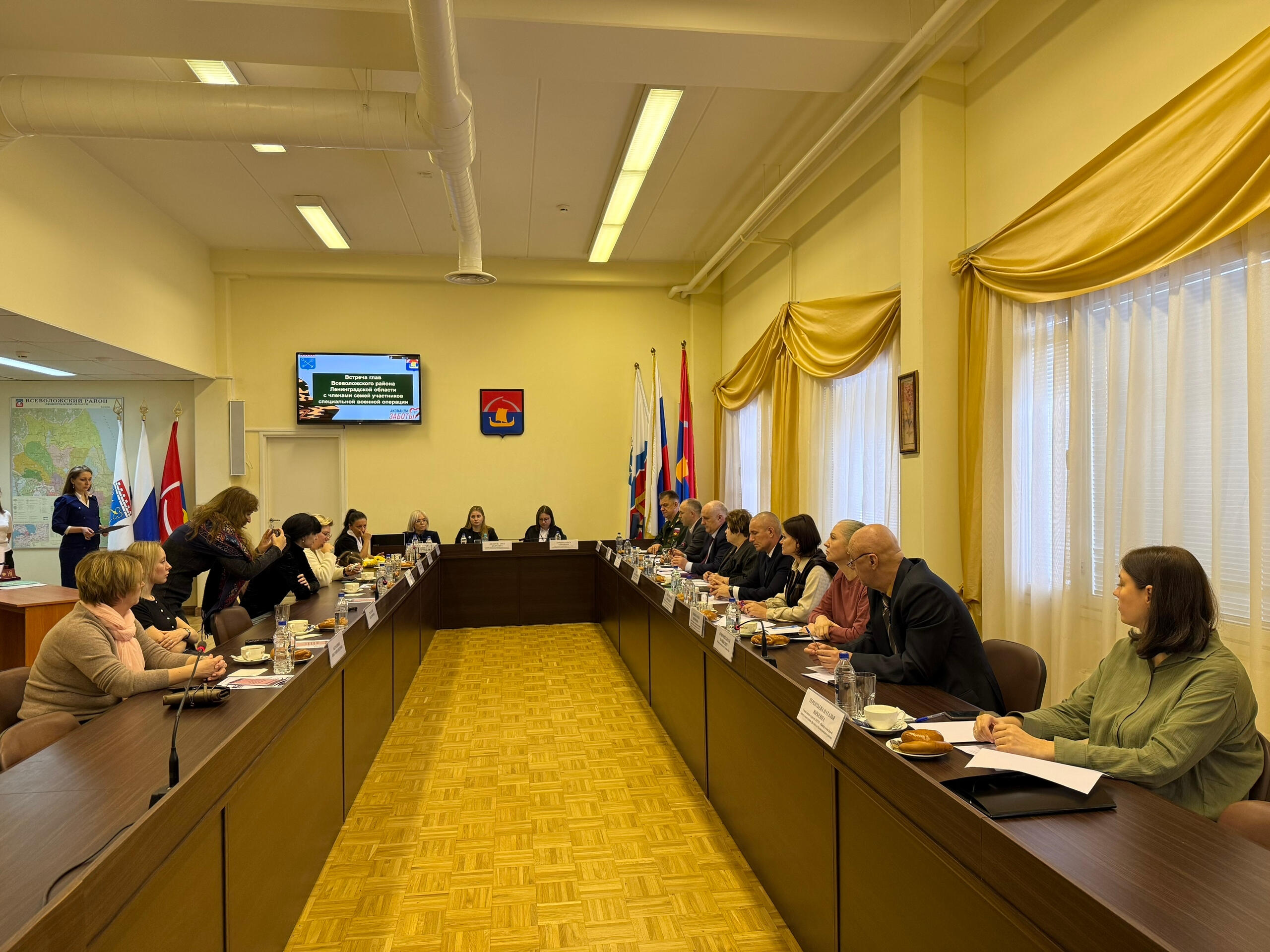 Во Всеволожске родственники военнослужащих, принимающих участие в СВО, встретились с руководителем районной администрацией Андреем Воропаевым и главой города Максимом Домрачевым.