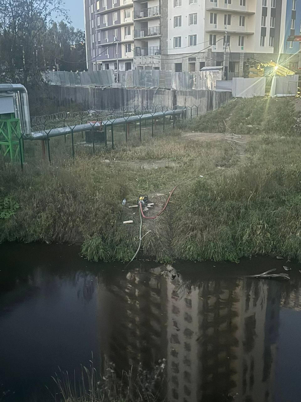 Государственные инспекторы провели выездное обследование и установили, что загрязнение происходит со строительной площадки на Оборонной улице, где возводят многоквартирный дом. Стоки с содержанием размываемых грунтов откачиваются с помощью мотопомпы и сбрасываются в реку.