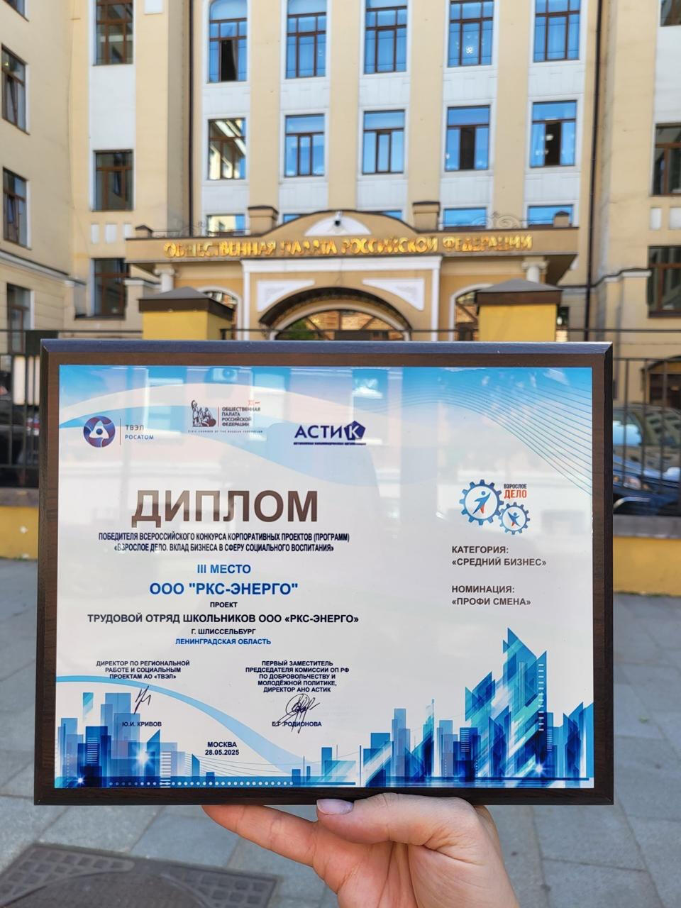 Компания «РКС-энерго» стала бронзовым призёром Всероссийского конкурса корпоративных социальных проектов «Взрослое дело. Вклад бизнеса в сферу социального воспитания». Церемония награждения прошла 28 мая в Общественной палате РФ, где были представлены лучшие практики корпоративной ответственности со всей страны.