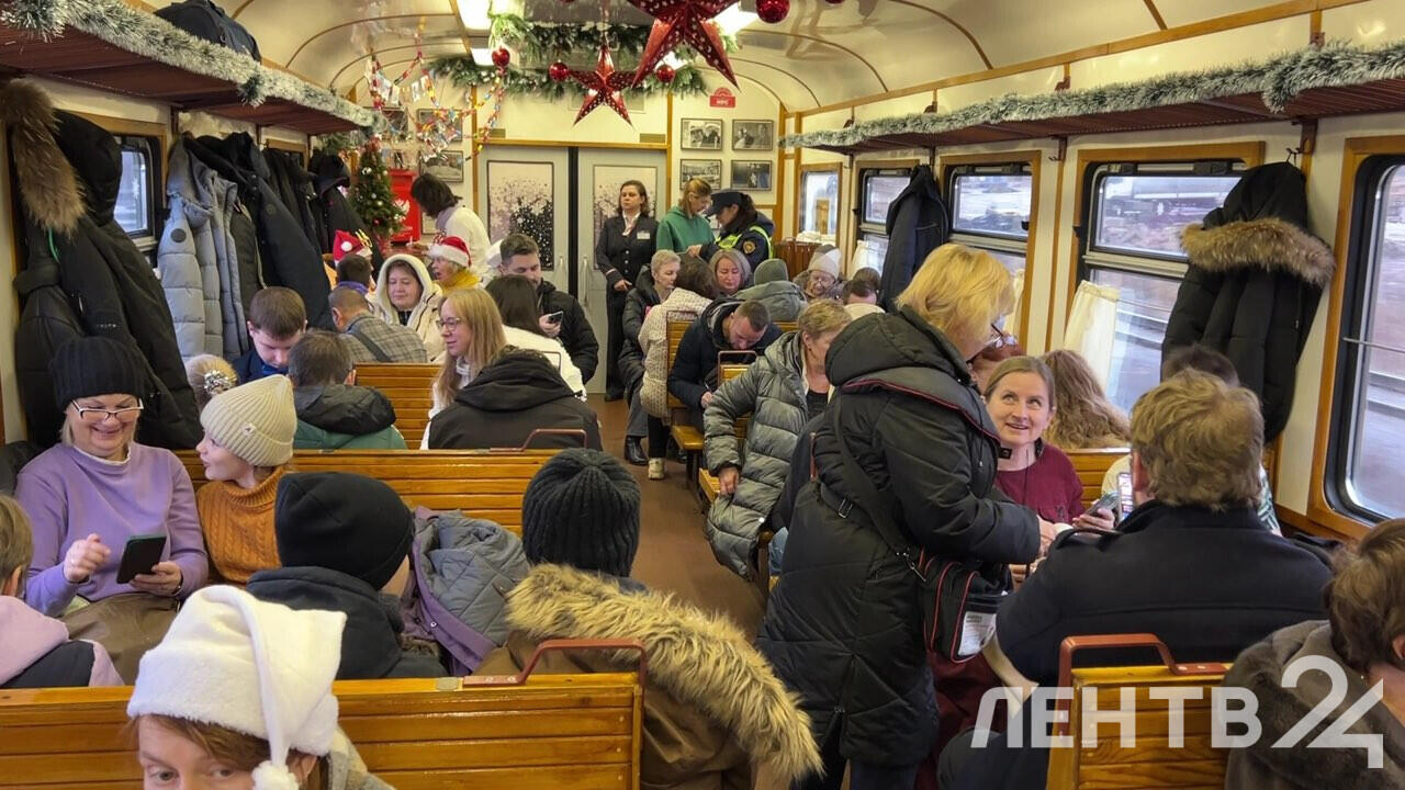 Праздник уже в пути. С Балтийского вокзала Санкт-Петербурга прямо до столицы Ленобласти запустили ретропоезд «Лахта». Сегодня пассажиров встретили музыканты, Дед Мороз и экскурсовод, который по пути рассказал об истории железнодорожных путешествий.