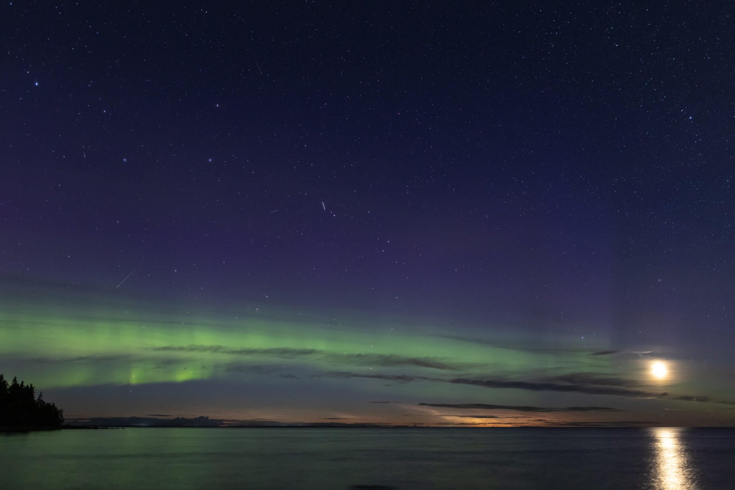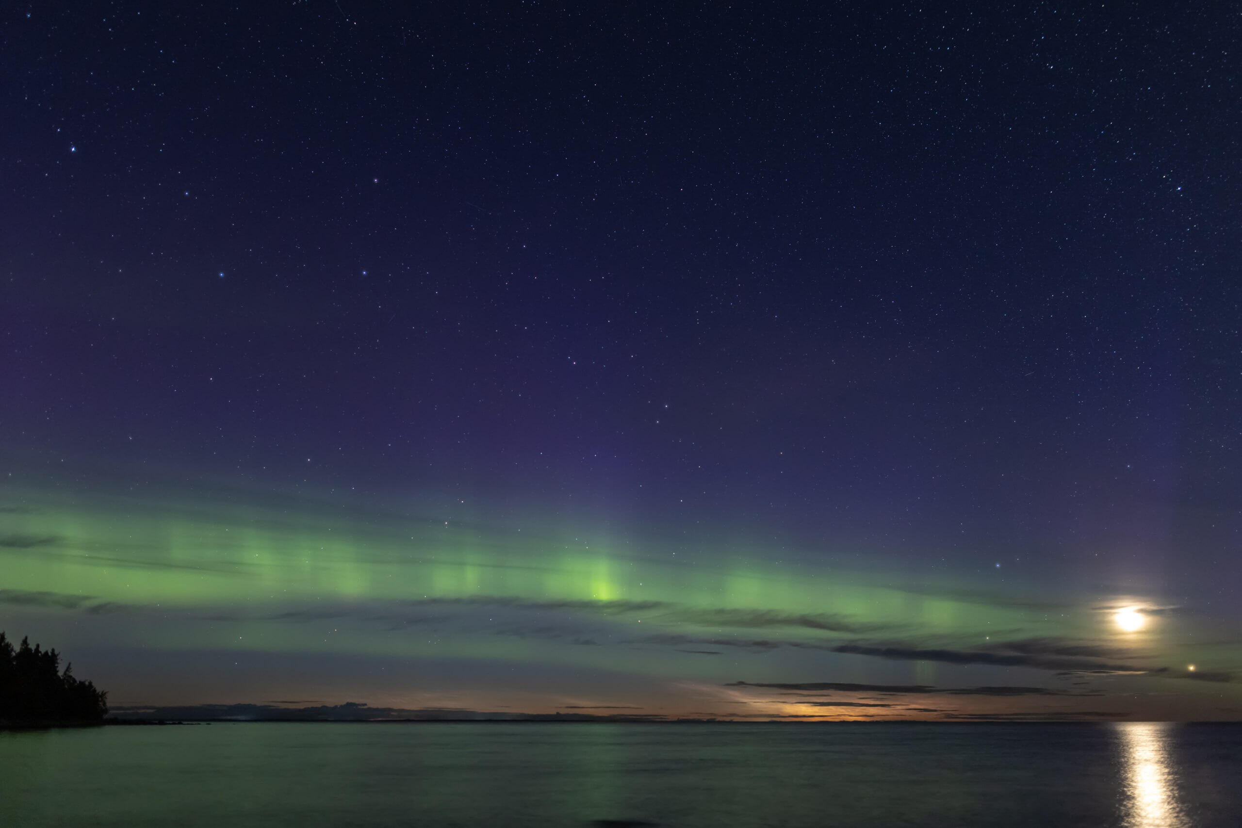 восходом стройной Луны. Эмоциями от красивого зрелища на Ладожском озере поделилась