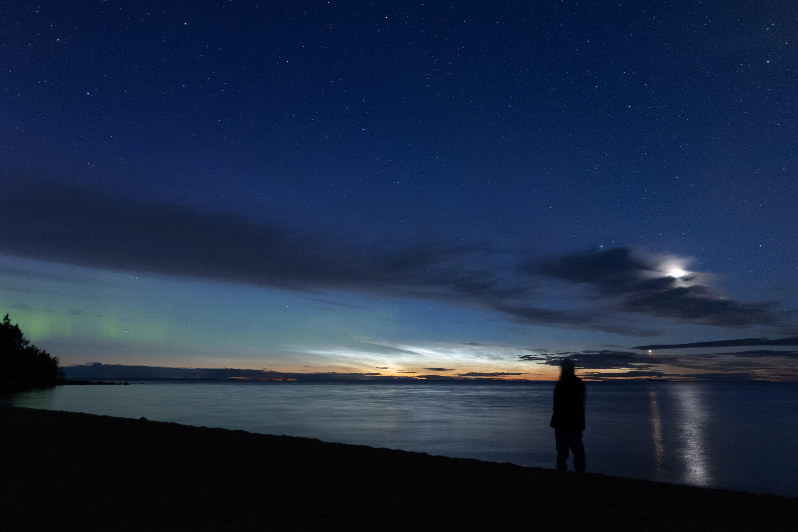 Серебристые облака и северное сияние озарили небо над Ленобластью