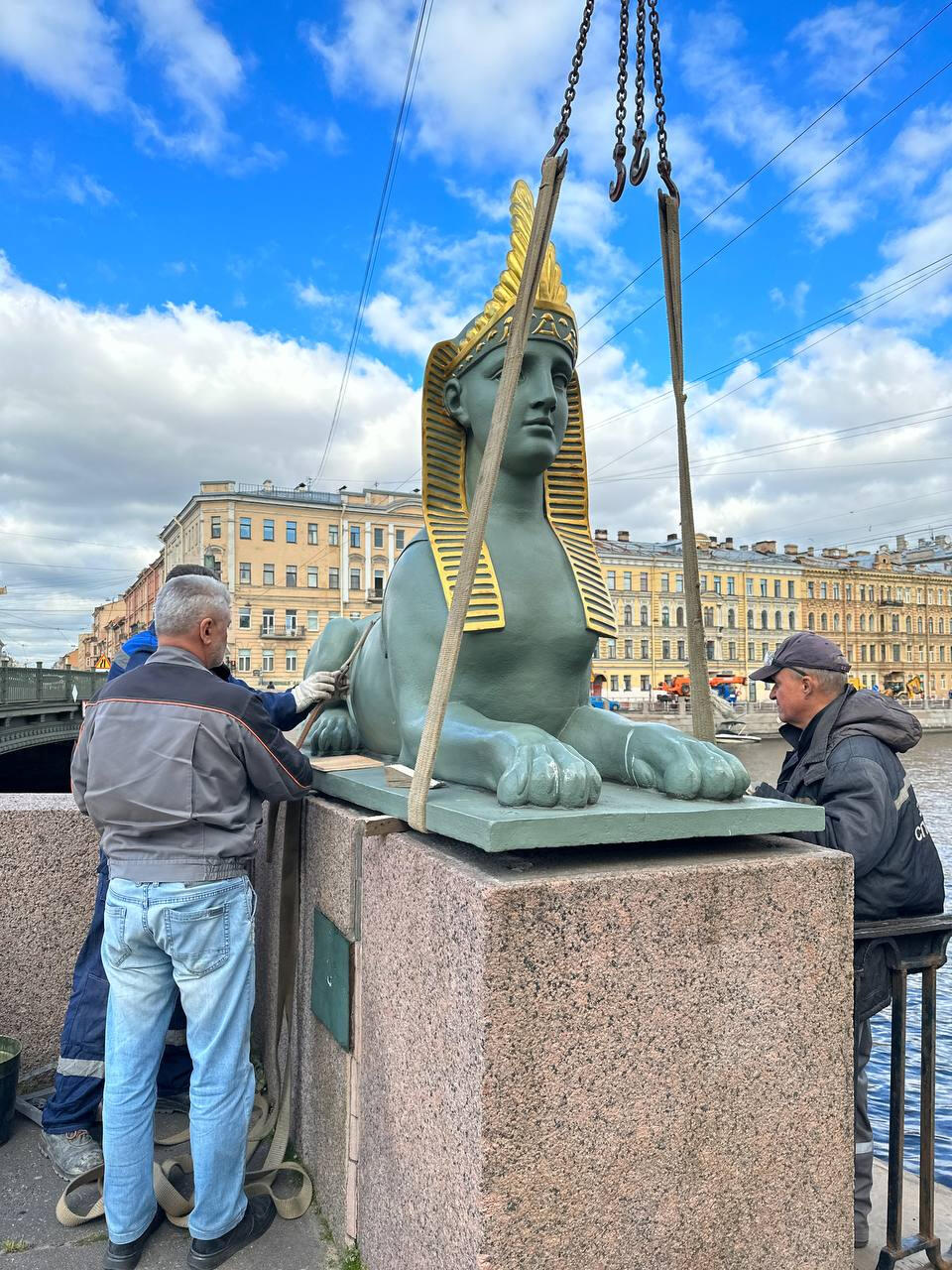 Сфинксы Египетского моста в Петербурге уехали на реставрацию
