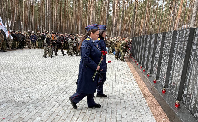 Участники почтили память павших минутой молчания и возложили цветы к мемориалу.