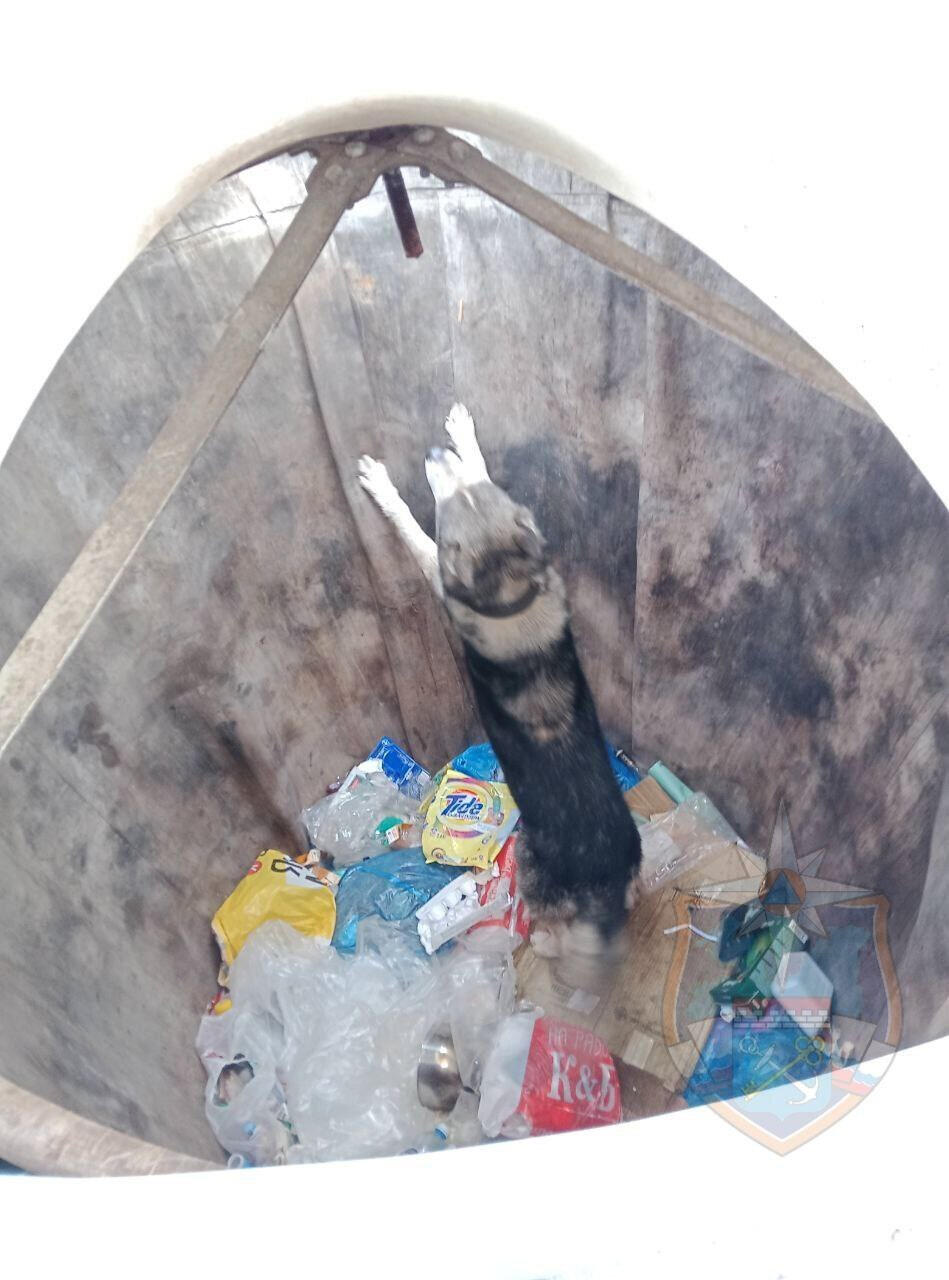 Помощь спасателей потребовалась в среду, 7 мая, в Лодейном Поле. В большом мусорном контейнере, установленном на улице Ударников, люди заметили провалившуюся туда собаку.