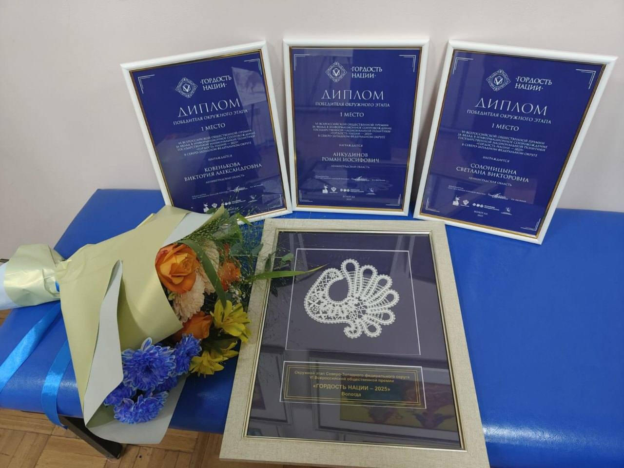 Во вторник, 14 октября, в концертном зале «Русский Дом» в Вологде торжественно наградили лауреатов VI Всероссийской общественной премии «Гордость нации – 2025» по Северо-Западному федеральному округу. В рамках премии были отмечены заслуги педагогов, активистов национально-культурных объединений, журналистов и авторов проектов, деятельность которых направлена на укрепление многонационального единства и сохранение культурного наследия. В этом году в состязаниях за победу участвовали 67 проектов из 11 регионов СЗФО.