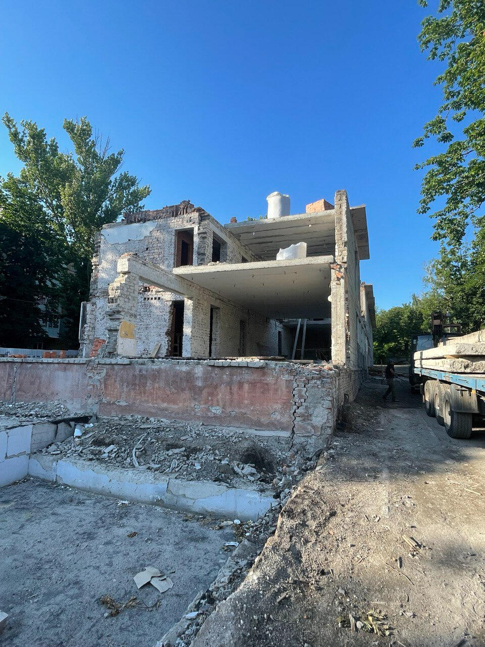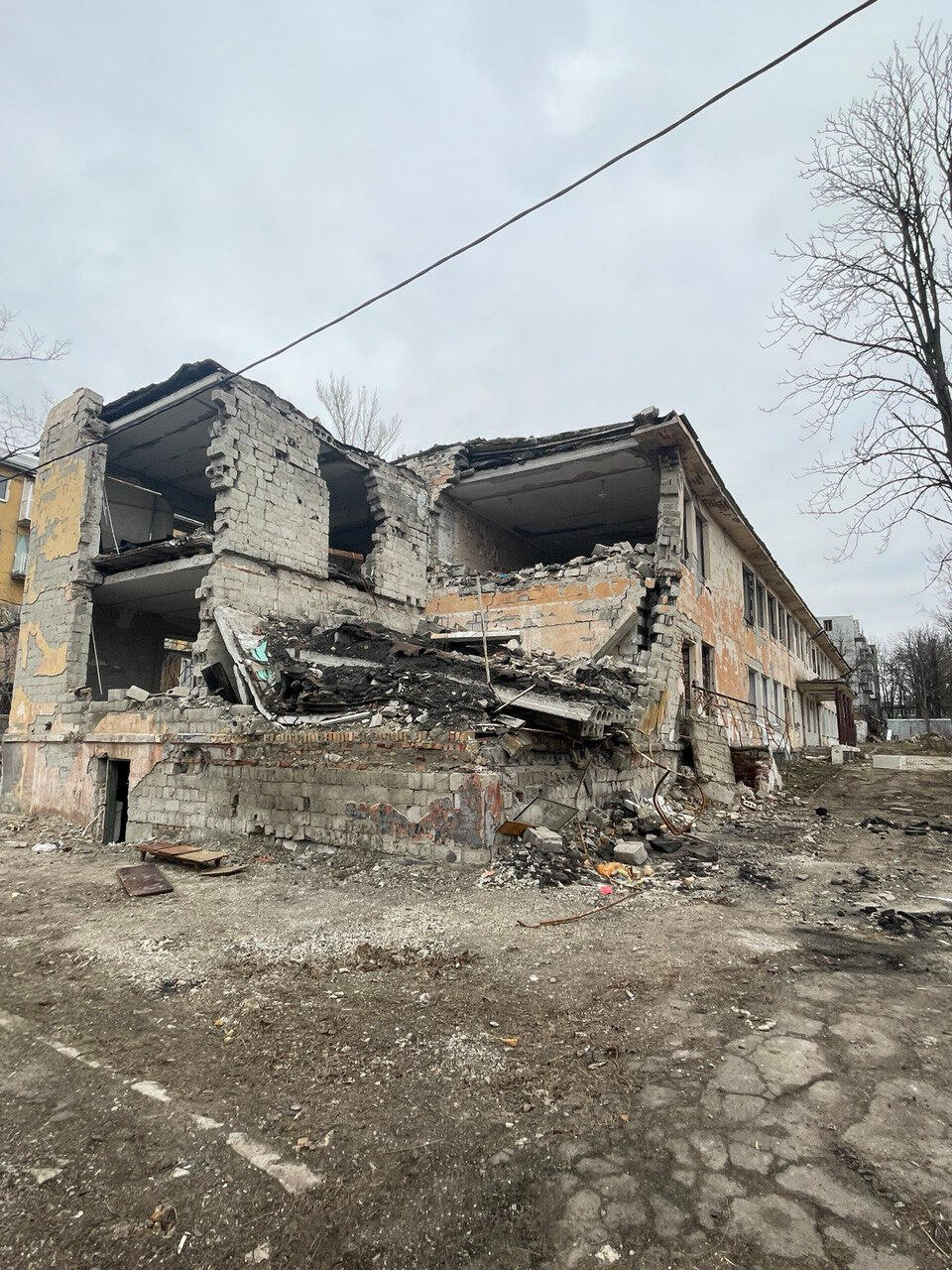 Часть здания была разрушена в ходе боев.